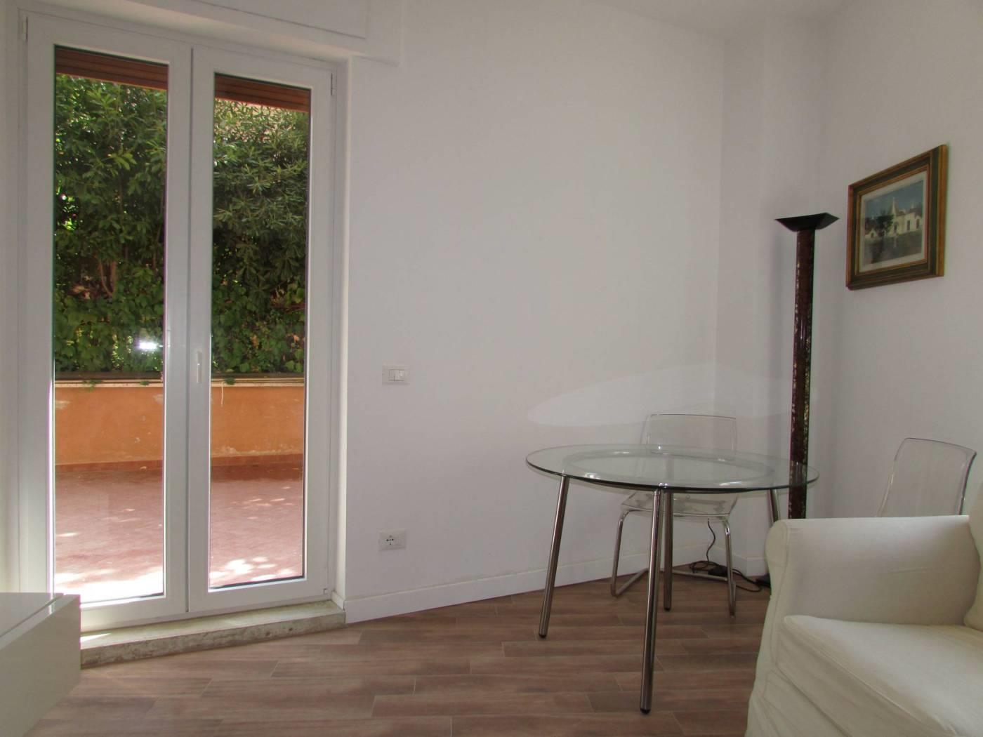 Delizioso appartamento completamente ristrutturato e arredato, luminosissimo e silenzioso, adatto a giovani coppie, composto di disimpegno d'ingresso, soggiorno con angolo cattura, comoda camera matrimoniale con balcone, servizio e ampia terrazza abirabile di 30 mq. ca., nel verde, con accesso dal soggiorno. Termoautonomo