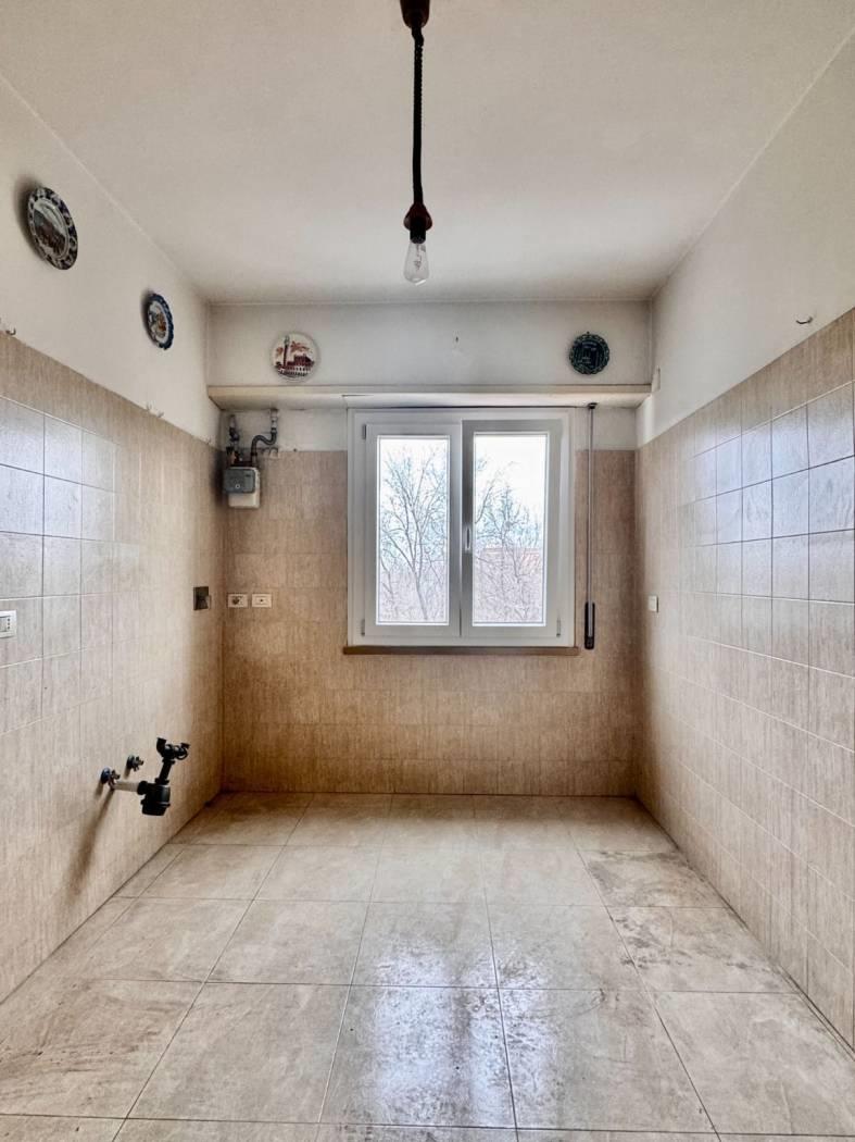Grazie alle generose dimensioni della cucina, l’appartamento si presta facilmente a una diversa distribuzione degli spazi: