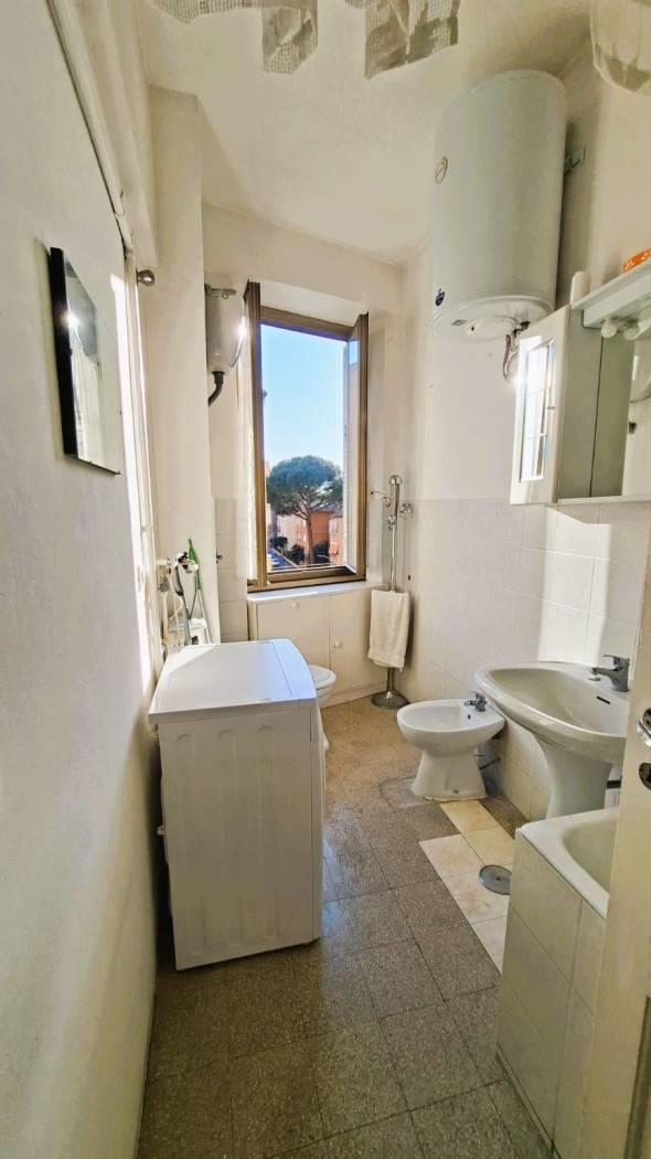 L'entrata è da via dei Treviri con doppio affaccio anche su Largo Spartaco in un palazzo con facciate in mattoncini anni 60, set cinematografico di alcuni importanti film, l'appartamento con ascensore, da ristrutturare internamente mq 90, libero subito, ingresso soggiorno due camere matrimoniali e una camera singola, un bagno con finestra , quattro balconcini , possibilità secondo bagno.L'appartamento ha in uso una piccola soffitta condominiale. Molto luminoso grazie alla doppia esposizione.
