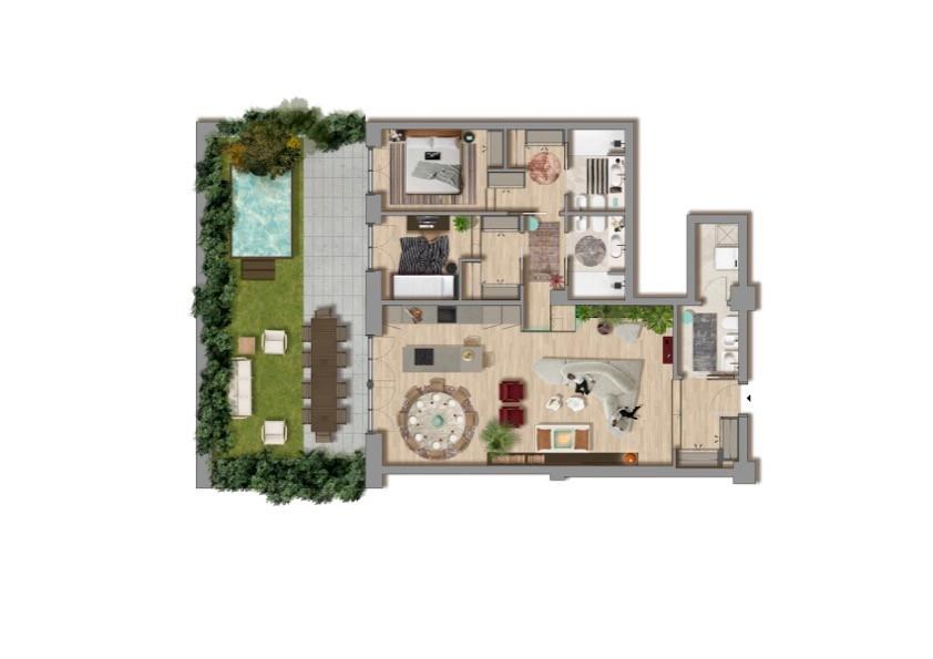 Una soluzione abitativa di prestigio, ideale per chi desidera spazi generosi, privacy e un contesto verde in una dimensione contemporanea dal fascino senza tempo.