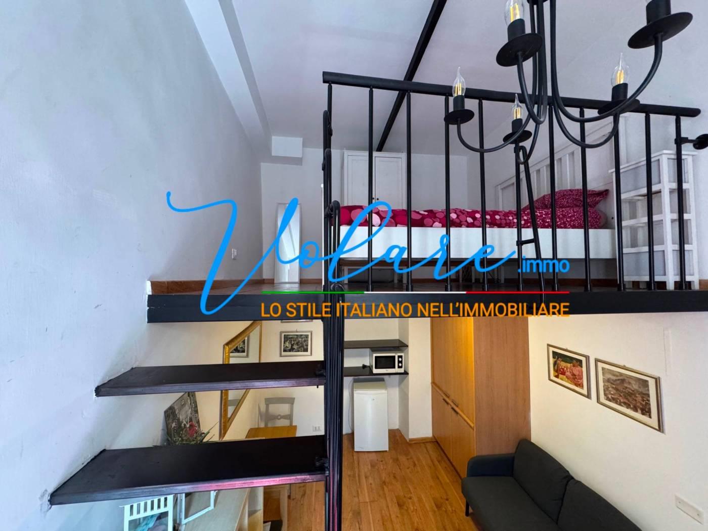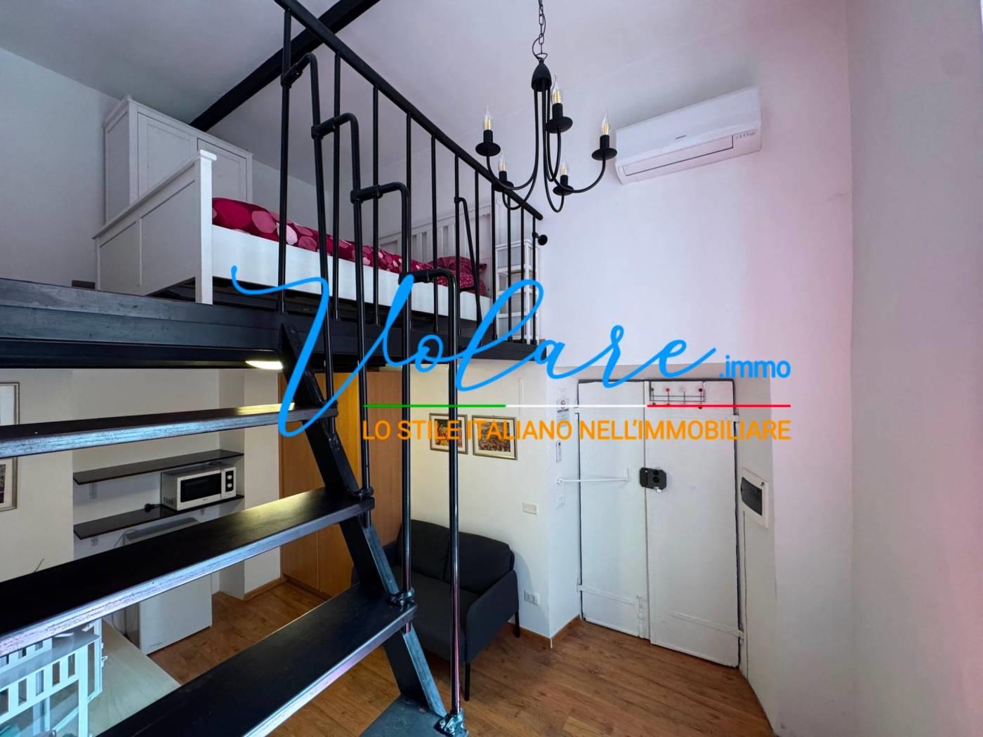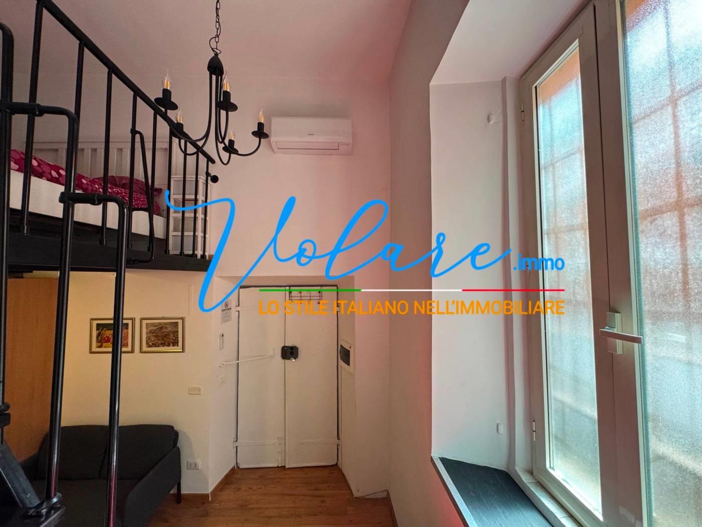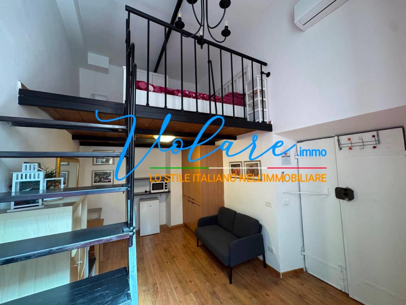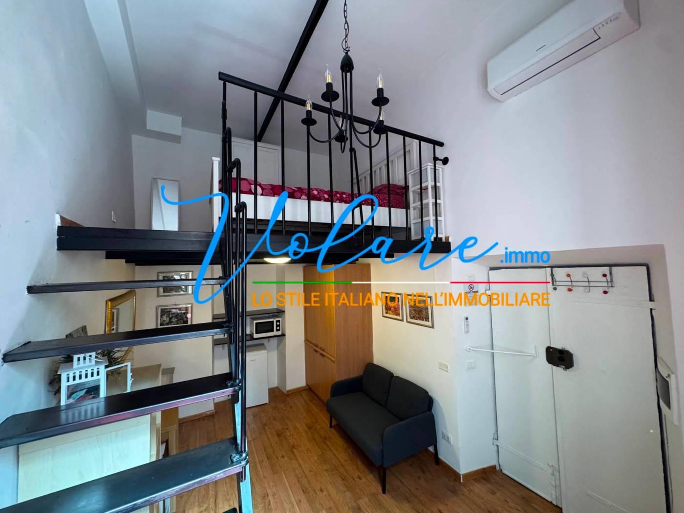 L’appartamento è composto da un soggiorno con angolo cottura a scomparsa, un bagno con finestra e una comoda scala che conduce alla zona notte soppalcata, con altezza vivibile. L’immobile è stato recentemente ristrutturato e gode di ottima luminosità con affaccio su Vicolo de’ Burro’.