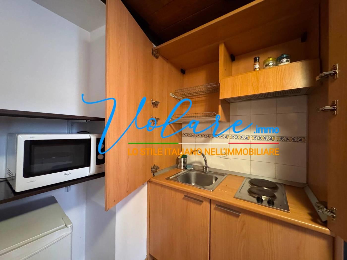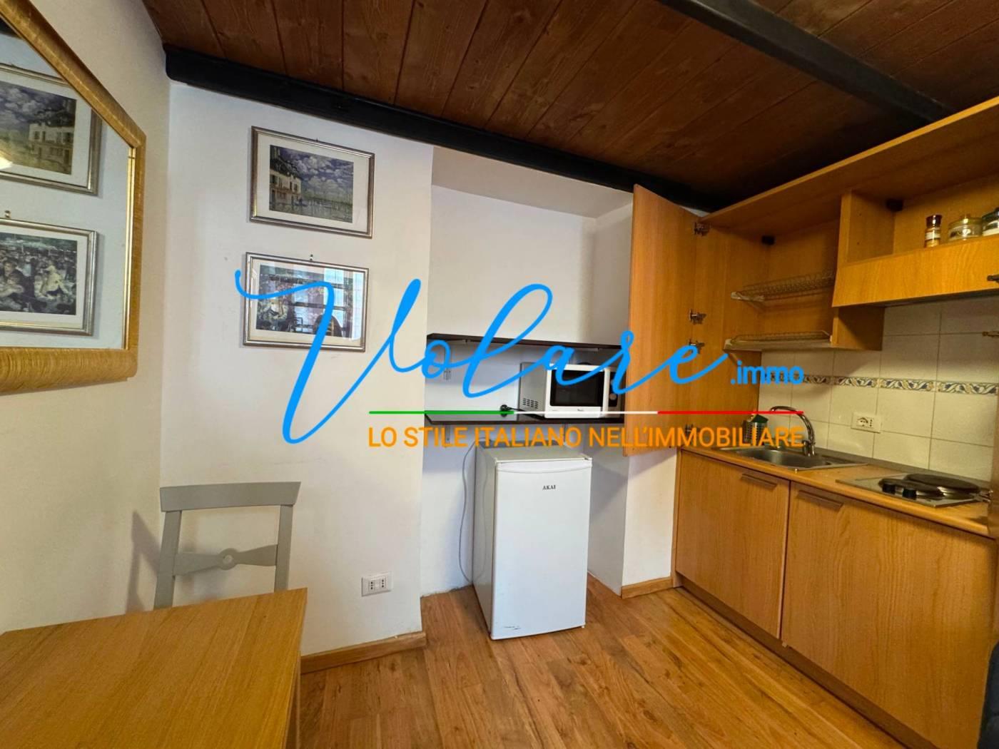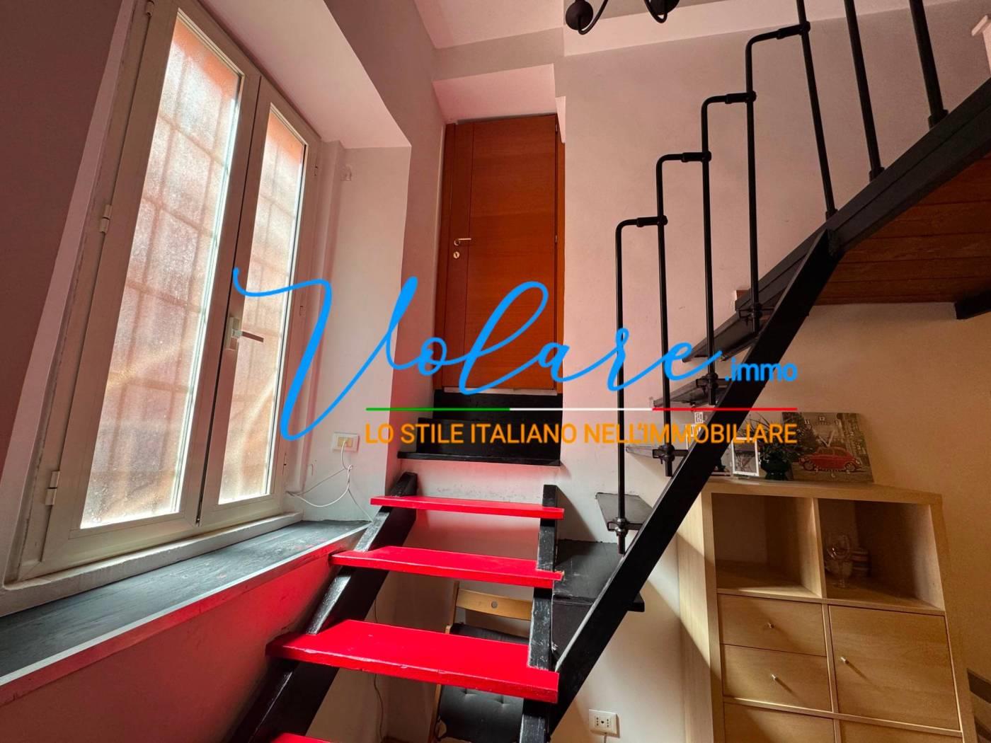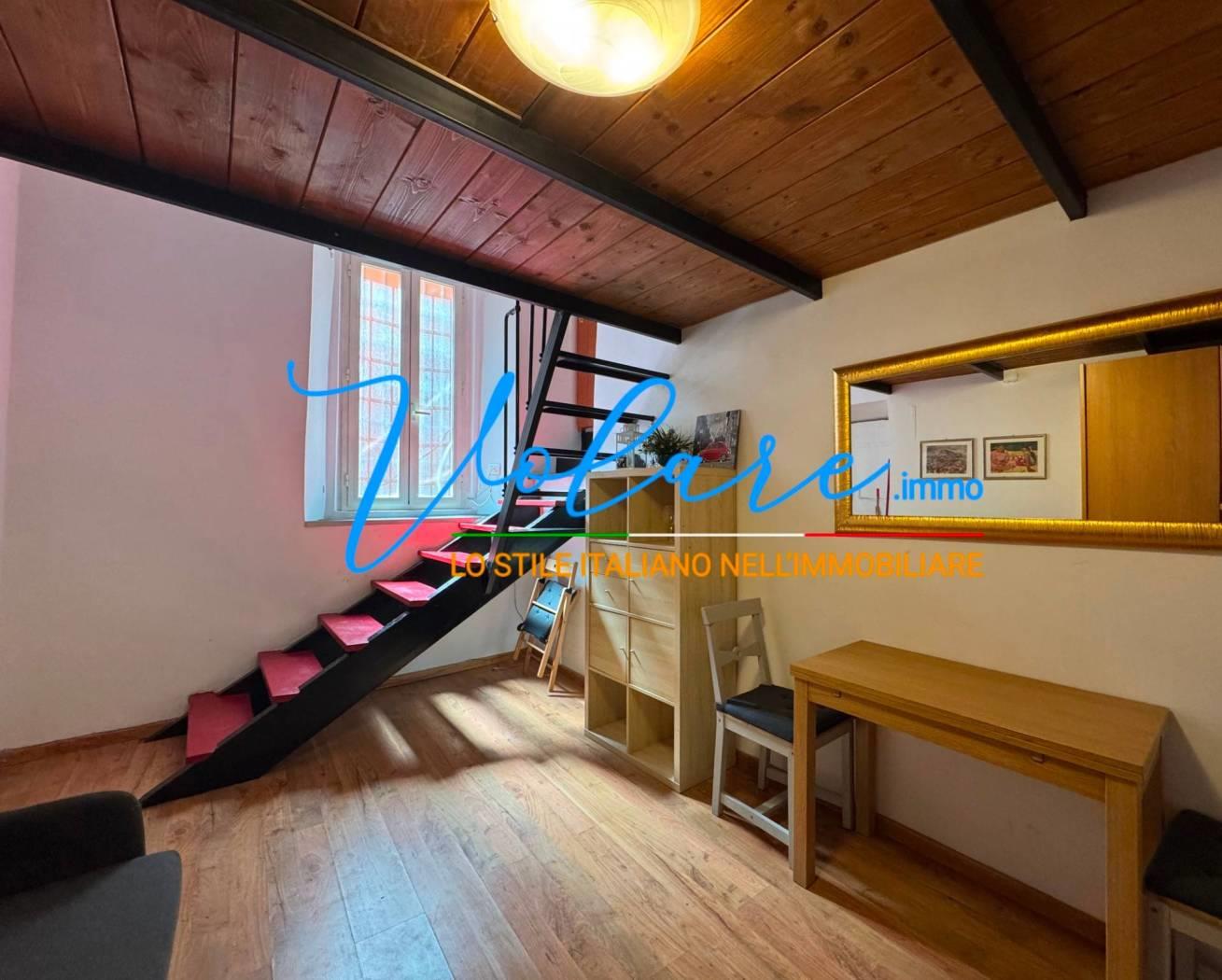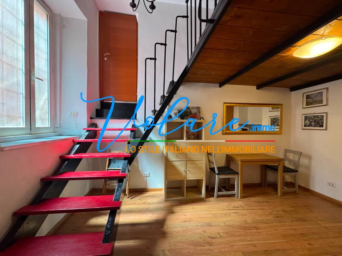 L’appartamento è composto da un soggiorno con angolo cottura a scomparsa, un bagno con finestra e una comoda scala che conduce alla zona notte soppalcata, con altezza vivibile. L’immobile è stato recentemente ristrutturato e gode di ottima luminosità con affaccio su Vicolo de’ Burro’.