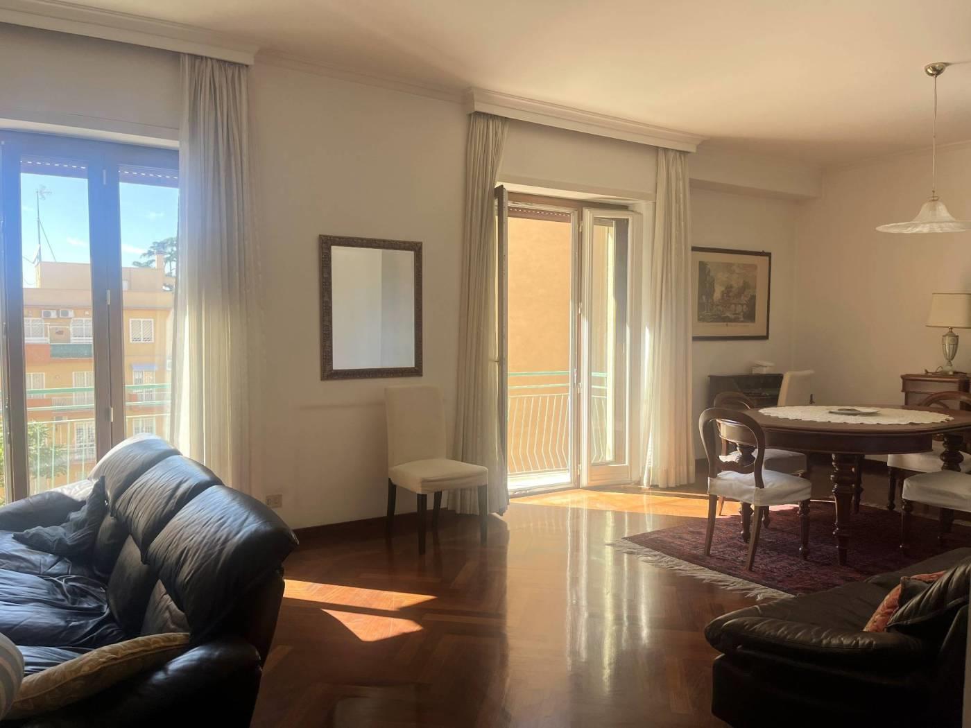 Nel cuore del quartiere Balduina, precisamente nella riservata Via Decimo Laberio, ben servito da qualsiasi tipo di attività commerciale, ben collegato con la stazione ferroviaria fermata "Appiano", con la metro A fermata "Cipro" e a pochi passi dal Percorso Ciclopedonale proponiamo in vendita un luminoso e silenzioso immobile di 162 mq con circa 25 mq totali tra tre balconi, posto al terzo piano di una palazzina in tinta in ottimo stato di totali piani cinque. L'appartamento è così composto: ampio ingresso, salone doppio con accesso ad un balcone e affaccio ad ovest su via Decimo Laberio, una cucina abitabile con accesso ad un secondo balcone che percorre tutto il lato lungo di casa orientato verso sud-est, un corridoio con armadio a muro, tre camere da letto e due bagni finestrati. L'appartamento si presenta in buono stato, in quanto ristrutturato nel 2002, e dotato di parquet in tutta casa, riscaldamento autonomo, infissi in pvc doppio vetro (all'interno effetto legno), tende da sole ai balconi, condizionatori in due camere da letto, porta blindata e videocitofono. Completano la proprietà una cantina e l'utilizzo di un posto auto condominiale coperto o scoperto assegnato a rotazione.