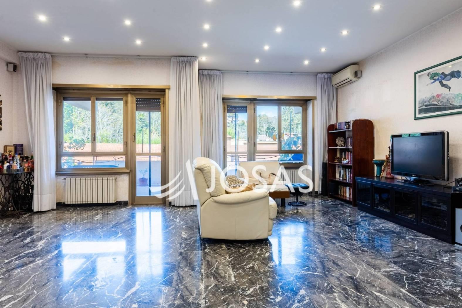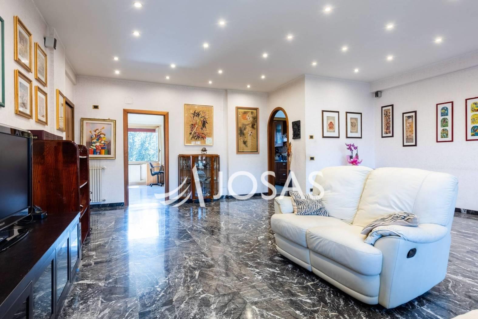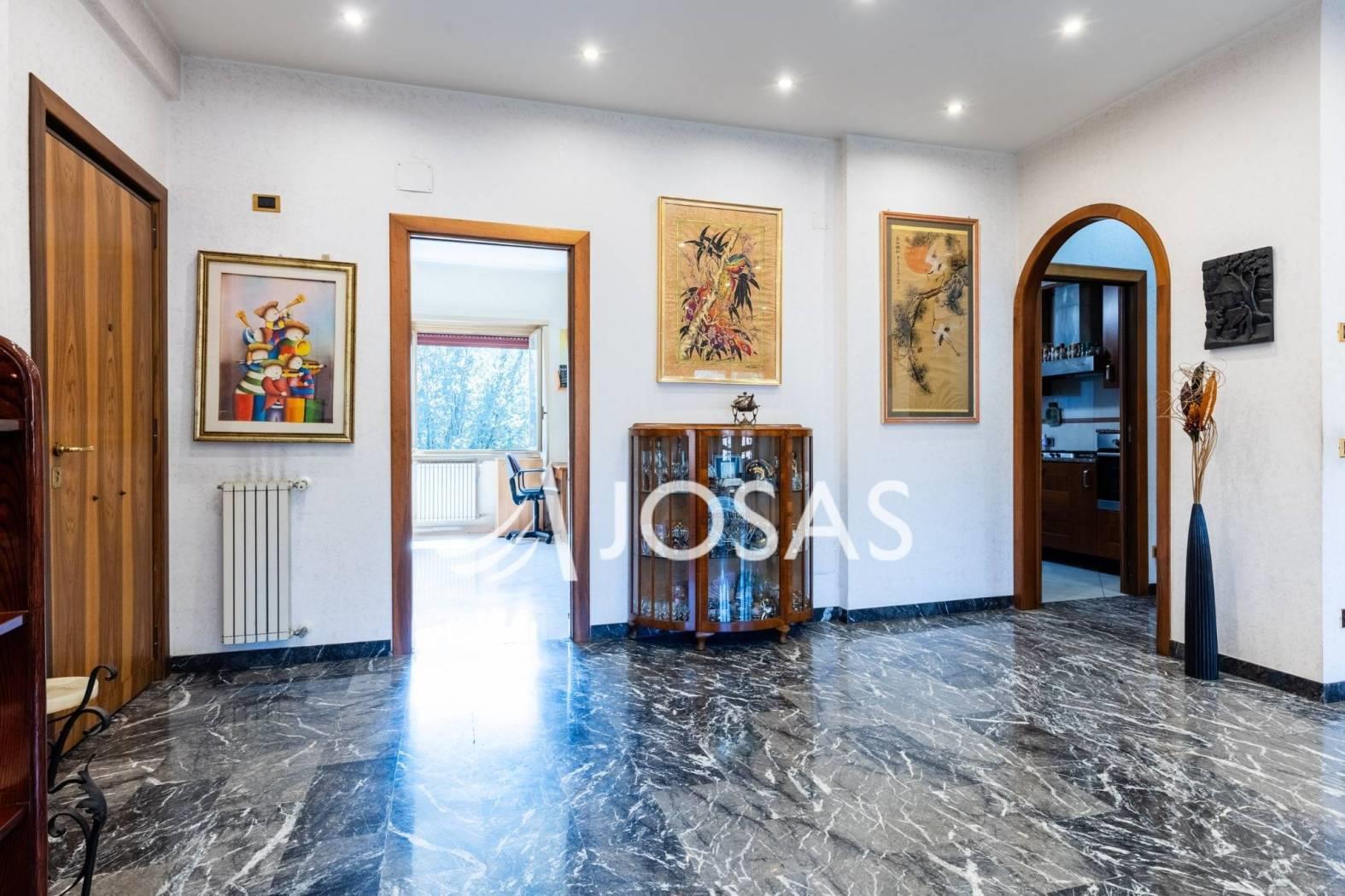 La proprietà di 140 mq catastali, sita ad un 2° piano, è composta da: un luminoso salone doppio di rappresentanza con uscita al terrazzo principale abitabile, molto grande e perfetto anche per mettere un tavolo con sedie per rilassarsi nei momenti di convivialità o mangiare in compagnia, adiacente una comoda camera da letto/studio con armadio a muro specchiato e affaccio sul parco interno condominiale e un balcone. La zona giorno è separata dalla zona notte da un corridoio con un armadio a muro di legno specchiato, e dà accesso alla cucina, anch’essa con balcone di pertinenza, dove è possibile poggiare anche un pozzetto. Continuando nel corridoio si raggiungono le due camere matrimoniali, sulla sinistra troviamo la camera padronale con parquet, acceso riservato al bagno in muratura en suite e con doccia idromassaggio, delimitata da un'altra porta per mantenere la privacy e un ampio terrazzo che serve la camera. Sulla destra troviamo il secondo bagno sempre in muratura e l’altra camera matrimoniale con accesso al terrazzo che collega al salone. L'immobile ha un'ottima esposizione, tripla (est-sud-ovest) e luminosità con un affaccio aperto (non avendo palazzine nell'immediato che occludono la visuale).