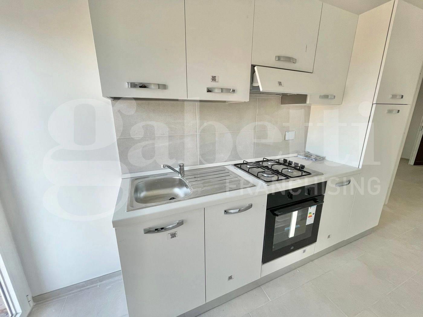 Completano la proprietà una funzionale cucina arredata ed un bagno dotato di comodo box doccia.