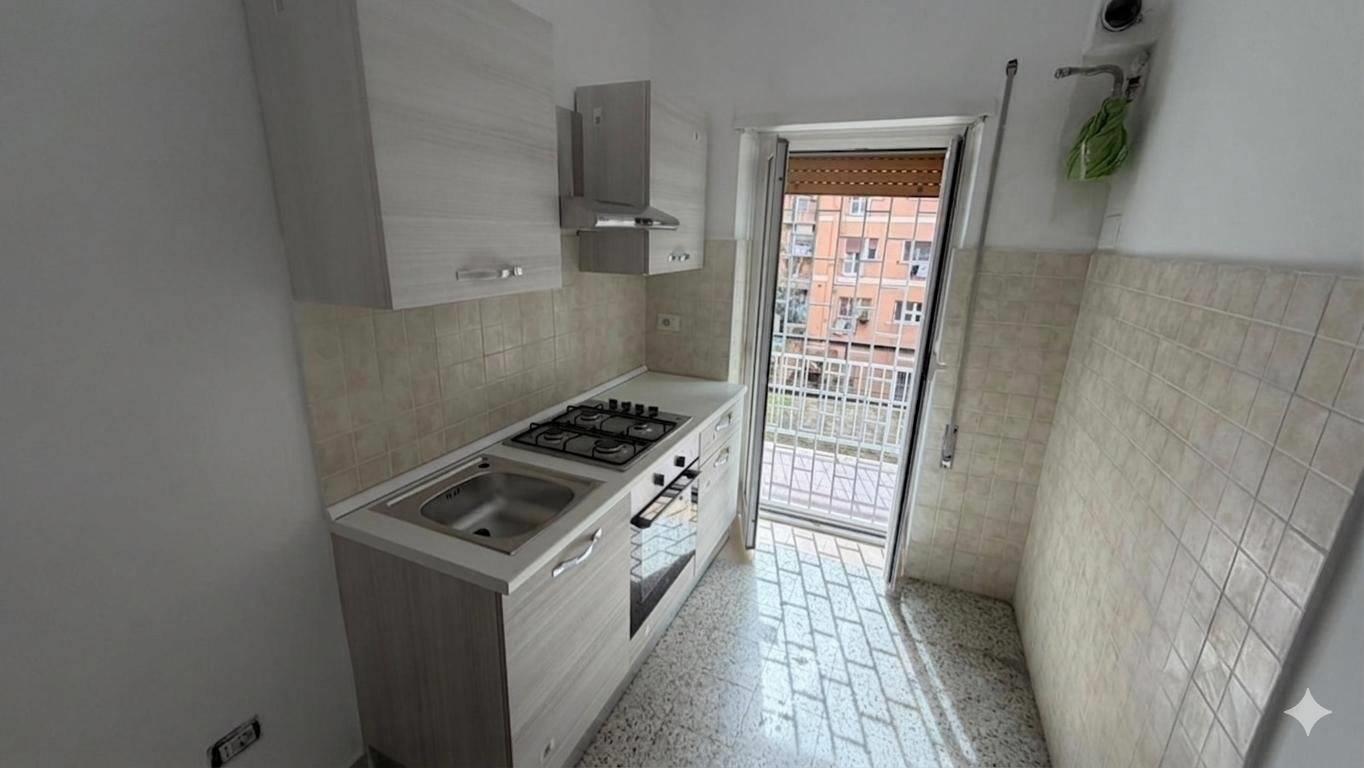 L'immobile è composto da ingresso, due ampie stanze, cucina abitabile, bagno ripostiglio e balcone. Verrà consegnato non arredato eccetto cucina e bagno.
