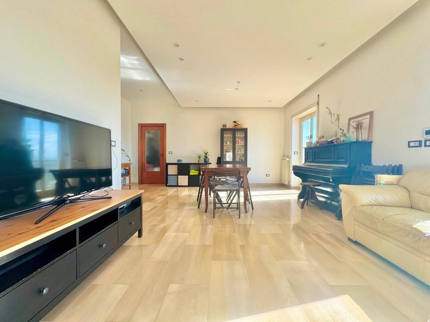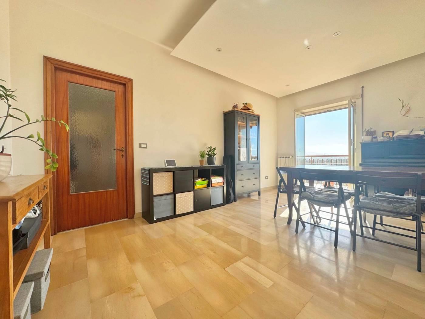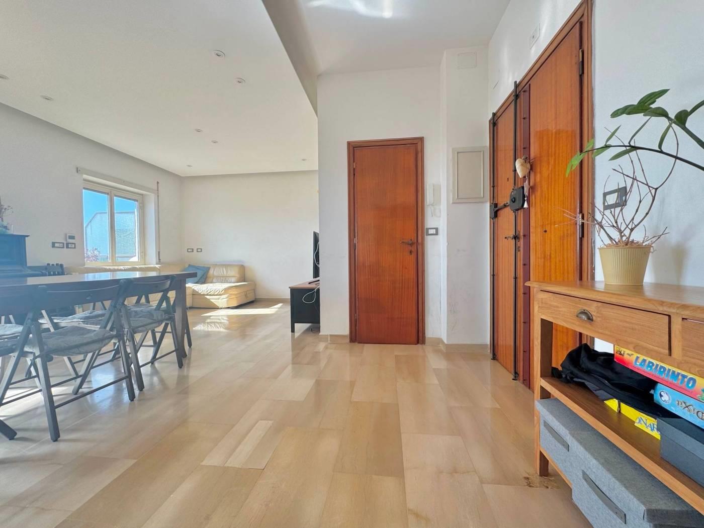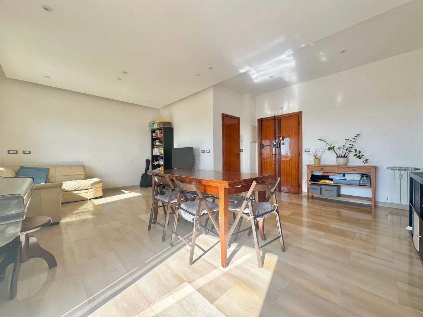 L’ingresso si apre su una spaziosa zona living, ambiente arioso e accogliente, valorizzato dall’uscita sul balcone di pertinenza che crea una piacevole continuità tra interno ed esterno.