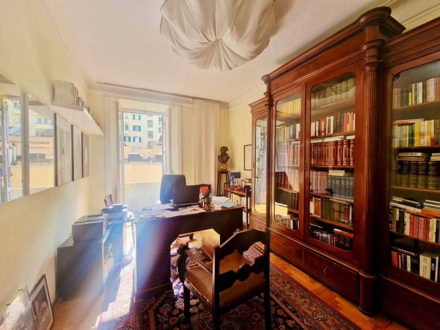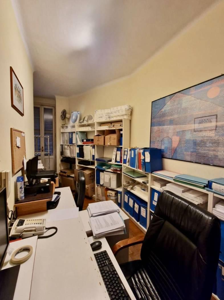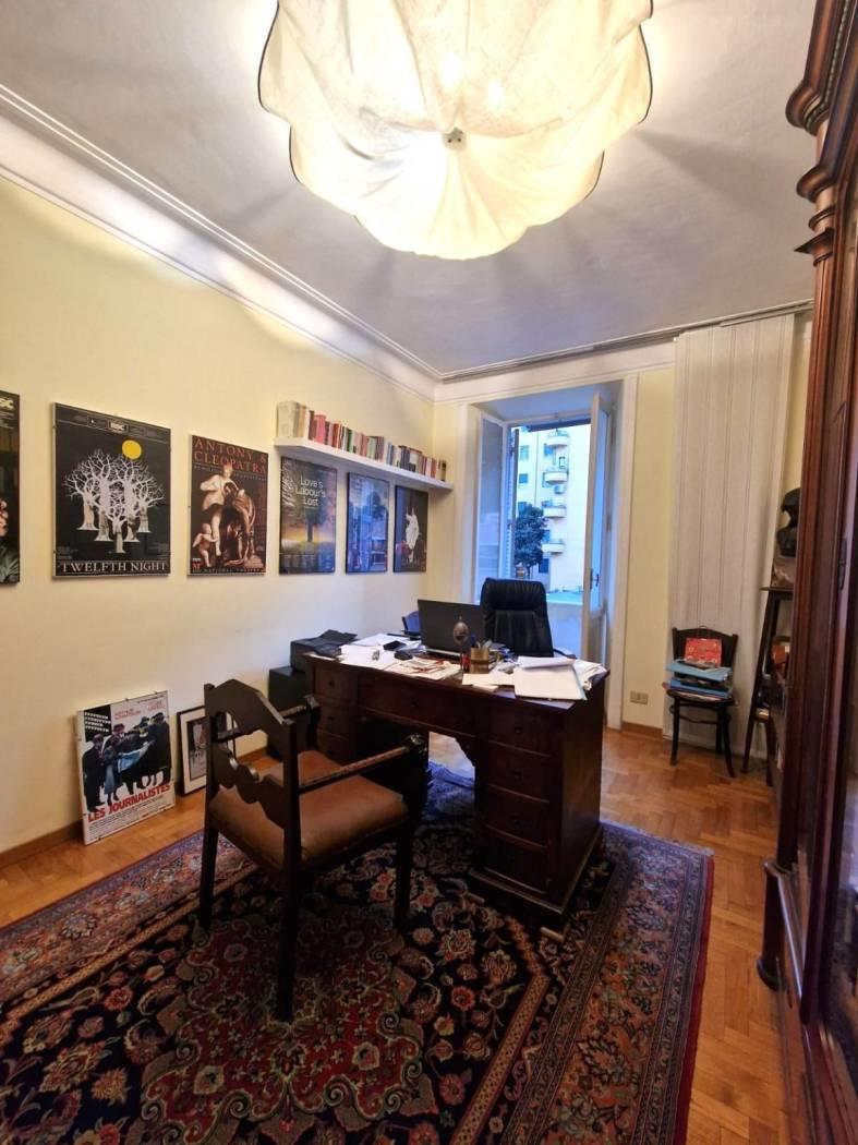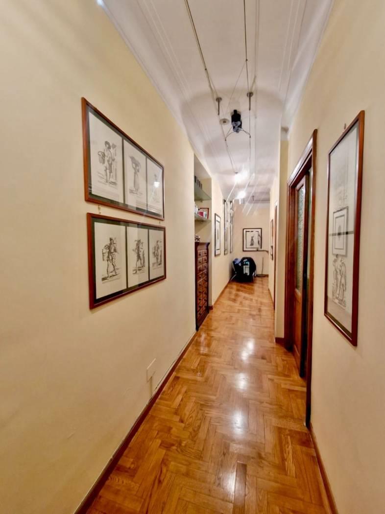 È composta da ingresso, quattro camere, una cameretta, bagno e due balconi. Gli spazi ampi e ben proporzionati consentono diverse soluzioni di utilizzo, sia come studio professionale sia come abitazione. Il parquet contribuisce al fascino e all’eleganza dell’immobile. Possibilità di ripristinare la cucina.