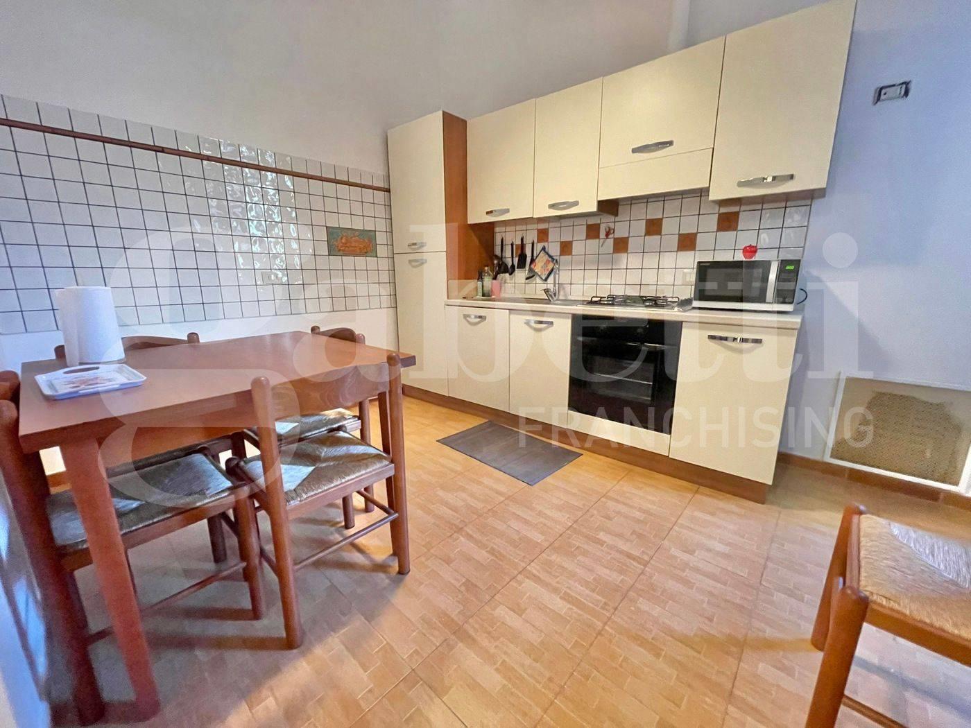 A servizio della zona giorno è presente una cucina vivibile, anch'essa dotata di un ulteriore accesso allo stesso balcone.