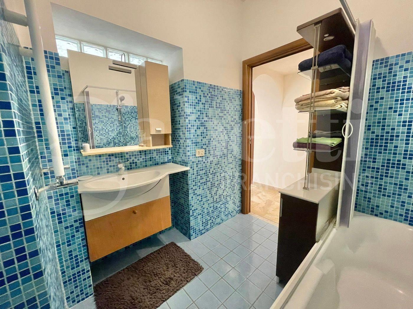 Sono inoltre presenti due bagni, dotati rispettivamente di un comodo box doccia e di una vasca da bagno.