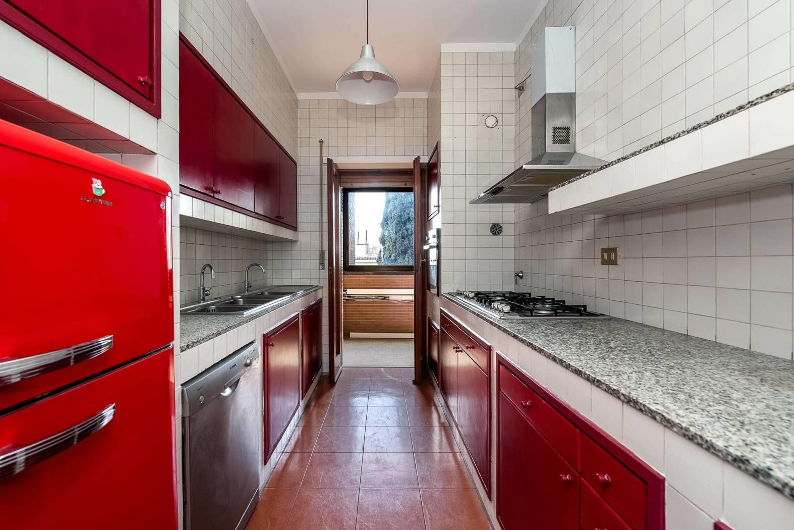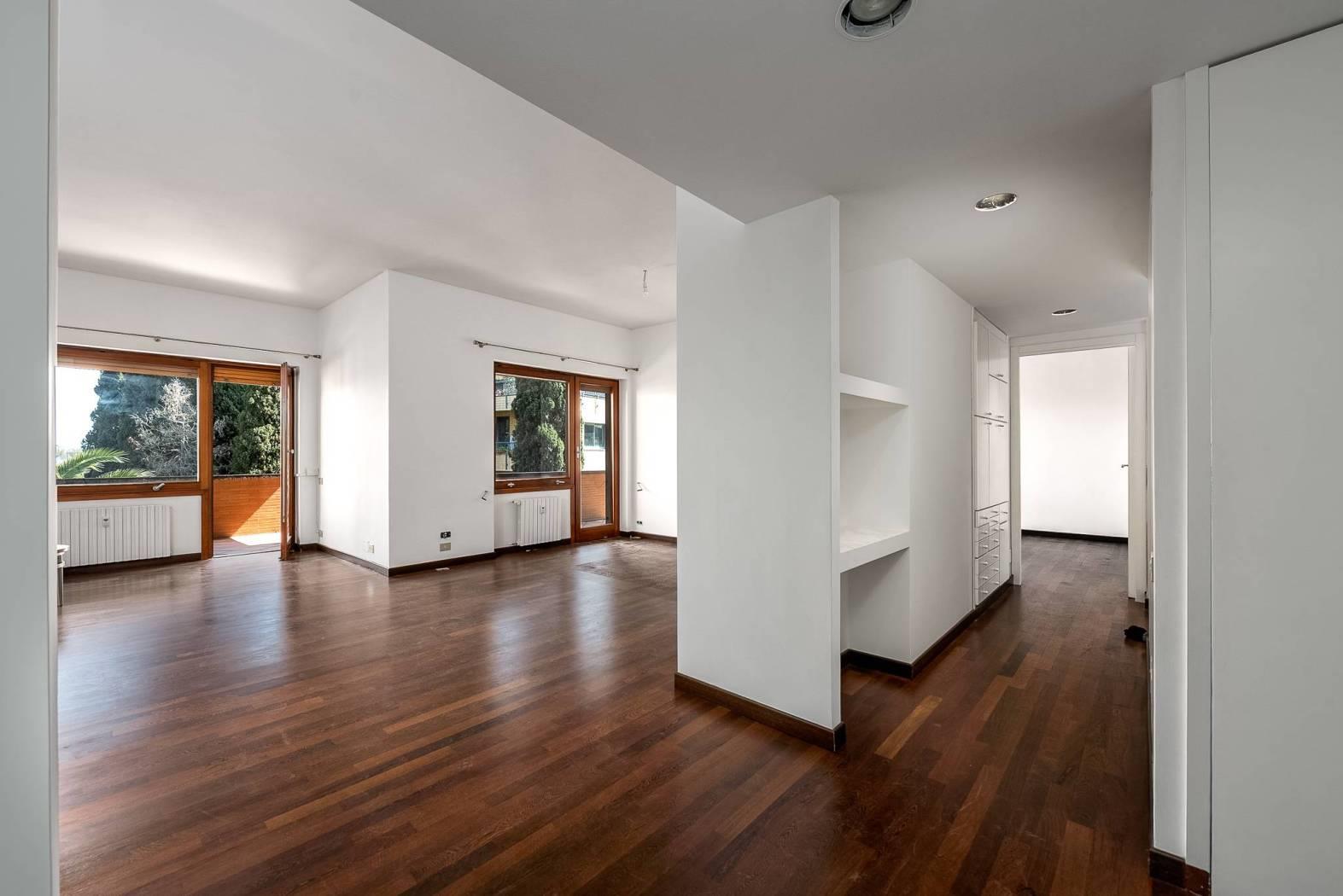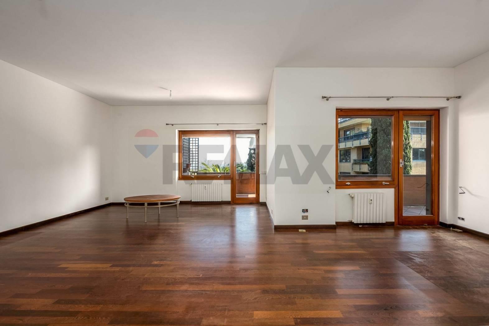 All’interno di uno dei contesti più esclusivi e riservati di Roma Nord, proponiamo in vendita un luminoso appartamento di ampia metratura inserito in un elegante fabbricato immerso nel verde. L’appartamento, di circa 230 m² commerciali, occupa il terzo piano e gode di un elevato livello di privacy: il piano ospita soltanto due unità ed è servito da doppio ascensore, di cui uno padronale con accesso diretto al pianerottolo privato.