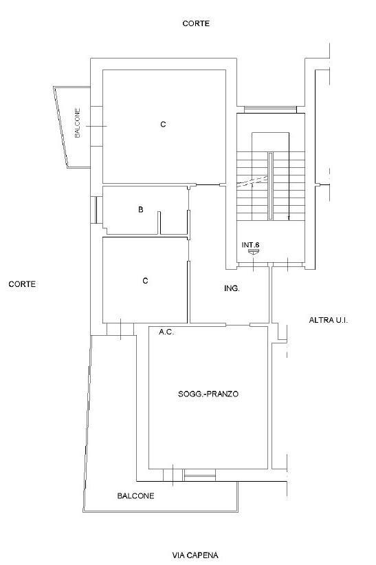 L’immobile posizionato al piano secondo (mancante di ascensore) risulta attualmente composto da circa 70mq su un unico piano: corridoio d’ingresso, soggiorno con cucina a vista e balcone, comoda camera e cameretta, bagno con finestra e un ulteriore balcone.