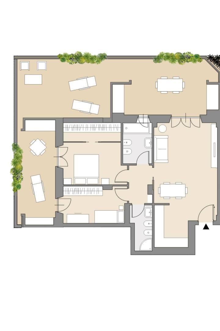 Luminoso trilocale di 80 mq interni, composto da ampio soggiorno con angolo cottura, due camere da letto, disimpegno, doppi servizi, due balconi e terrazzo di 42 mq. L'alloggio è fornito di porta blindata, videocitofono, cronotermostato ambiente ed elettrovalvole e predisposto per l'impianto d'allarme. Lo stabile, in cortina e con ascensore, è fornito di impianto fotovoltaico e pannello solare termico.