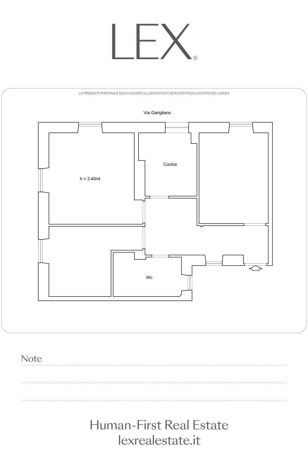 A pochi passi da Piazza Quadrata, meglio conosciuta come Piazza Buenos Aires, nello storico ed affascinante Quartiere Coppedé, zona rinomata per la sua eleganza ed originalità frutto del genio dell'architetto Gino Coppedé, proponiamo la vendita di un appartamento sito al terzo piano di uno stabile in stile eclettico su via Garigliano. Il palazzo in cui ci troviamo richiama molto lo stile liberty dei villini presenti nei dintorni di Piazza Mincio, perché trattasi degli uffici in cui l'architetto Coppedé dava vita ai suoi progetti. L'appartamento ci accoglie con un ampio ingresso, dove in primo luogo troviamo il salone con affaccio su via Garigliano, subito dopo accediamo al disimpegno centrale della casa, da cui si può accedere alle due camere matrimoniali, alla cucina abitabile ed al servizio. L'immobile presenta accorgimenti di pregio, come i soffitti molto alti e decorati e la pavimentazione in graniglia alla veneziana originale, inoltre negli ultimi anni sono stati ristrutturati gli infissi, la cucina e il servizio. Tutti questi fattori, sia interni alla casa, che esterni, rendono quest'immobile una valida scelta per chi vuole vivere in un contesto elegante , residenziale ed esclusivo. Completa la proprietà una comoda cantina presente all'interno del palazzo.