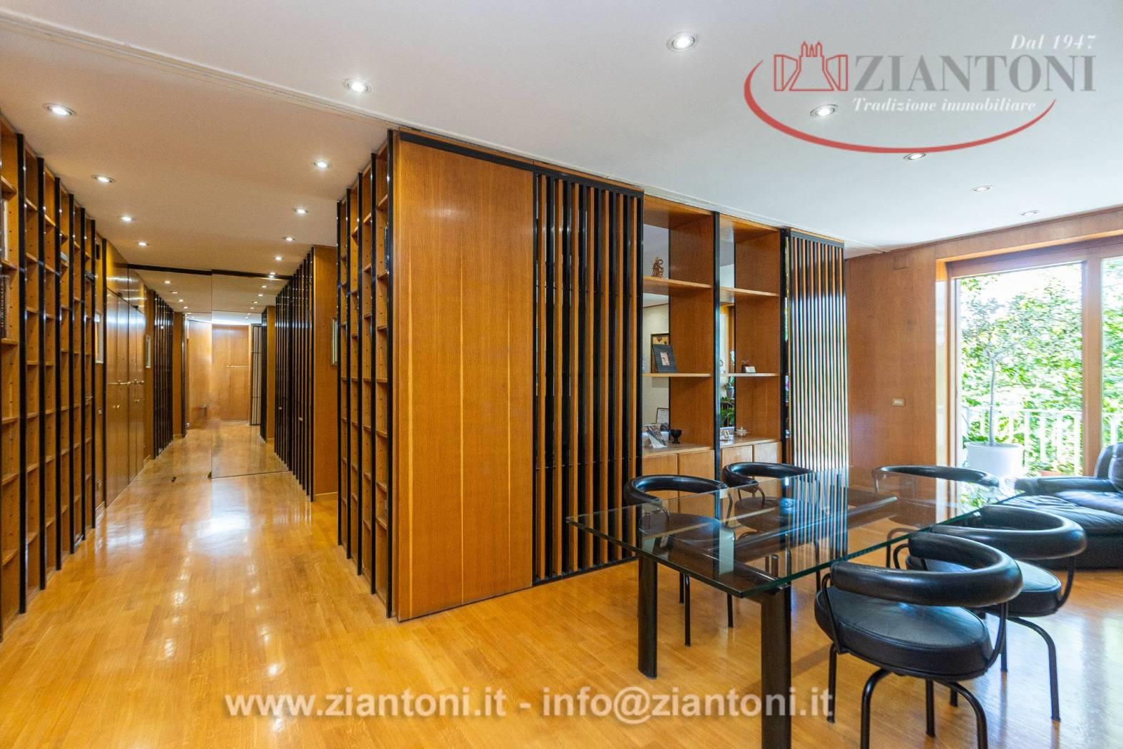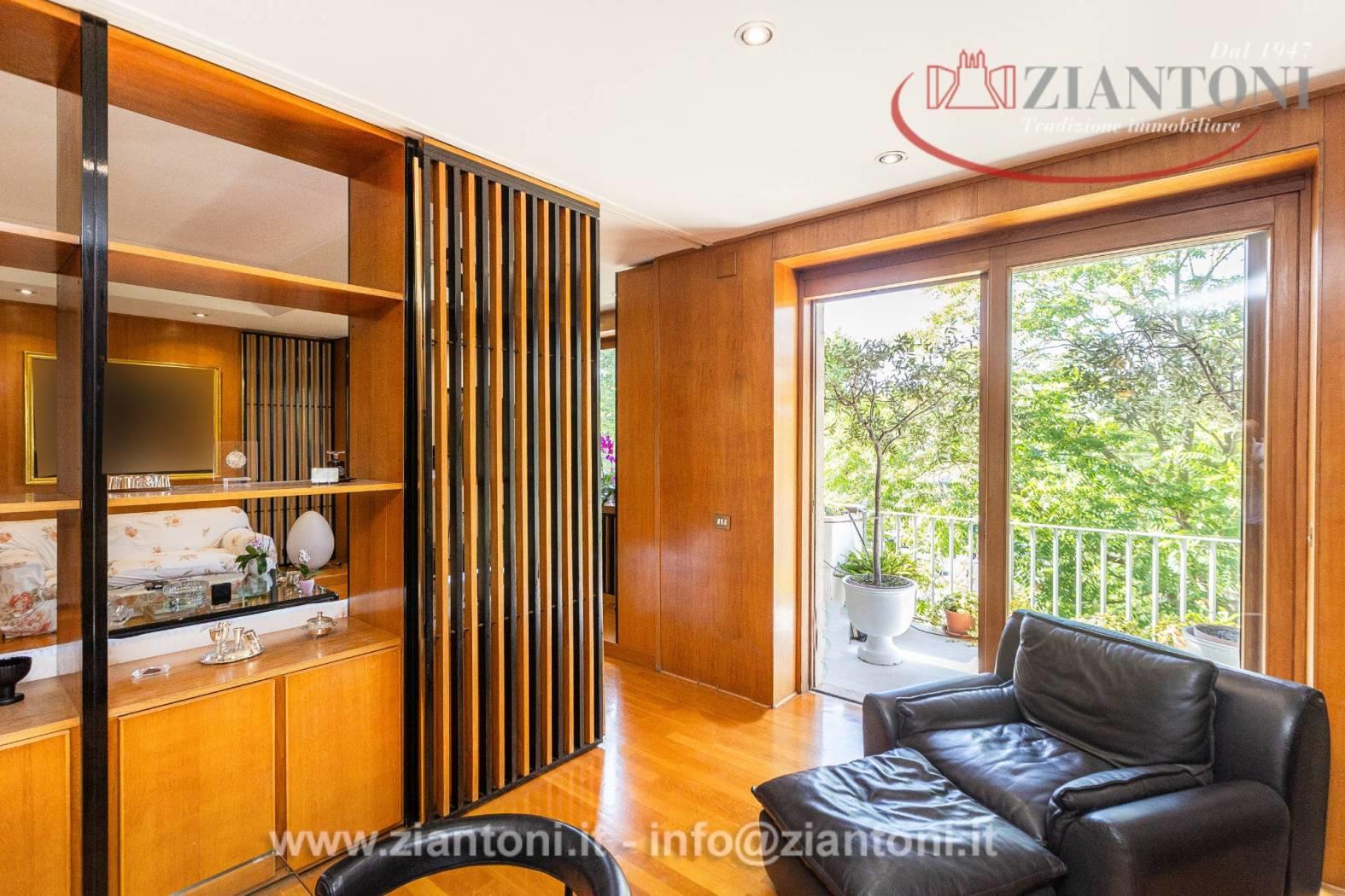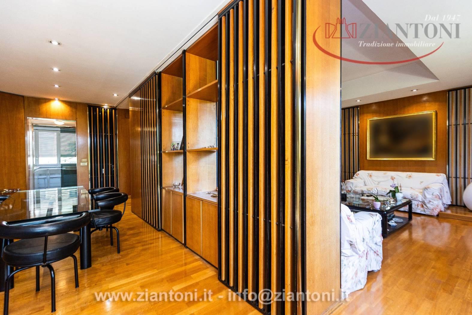 Proponiamo in vendita un prestigioso appartamento di circa 180 m² al quarto piano di un elegante stabile con servizio di portineria, doppio ingresso e doppio ascensore. L’appartamento gode di un’ottima vista aperta e si trova in un contesto riservato e ben servito. Le rifiniture sono di alto livello, con eleganti lavorazioni di falegnameria su misura che valorizzano ogni ambiente. La disposizione interna prevede un ampio salone doppio con camino con accesso ad balcone abitabile, zona pranzo separata, cucina abitabile, zona letto composta da tre camere da letto di cui una padronale con bagno en suite, secondo bagno principale oltre bagno di servizio e camera di servizio. Completano la proprietà un posto auto coperto condominiale ed una cantina. Soluzione elegante, spaziosa e pronta da vivere.