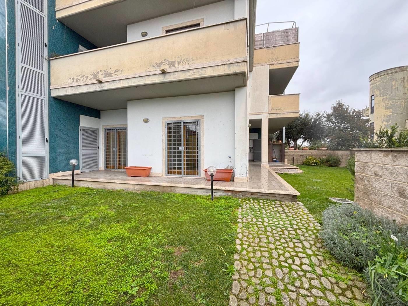 Maccarese - Via della Corona Australe. Appartamento al piano terra di 95 mq composto da ingresso, soggiorno con cucina a vista, due camere, due bagni, giardino angolare con esposizione a sud. Portico pavimentato. Pozzo per irrigazione. Riscaldamento autonomo. Possibilità di acquisto box auto di 33 mq nello stesso stabile, al piano -1 con ascensore a livello. Prezzo Box auto € 40.000,00