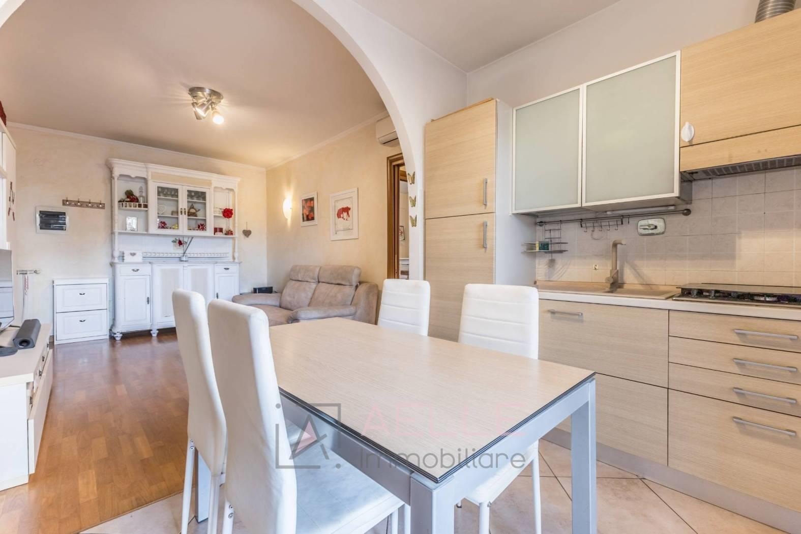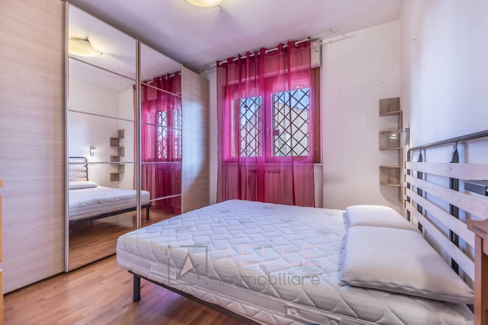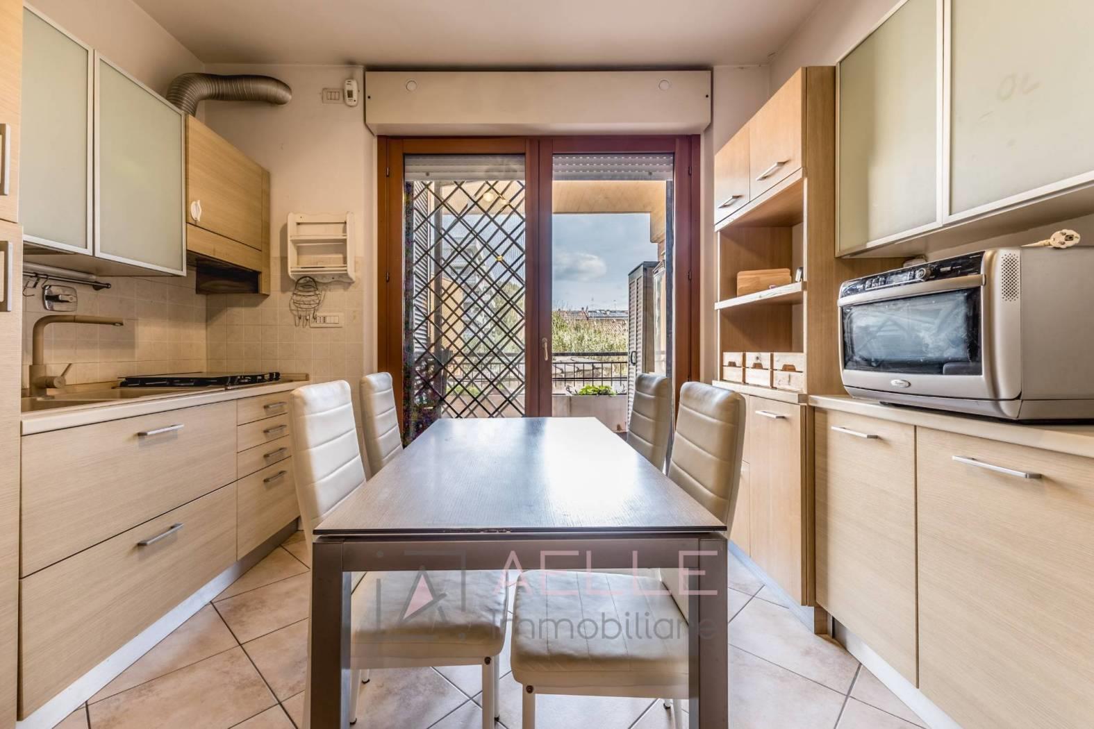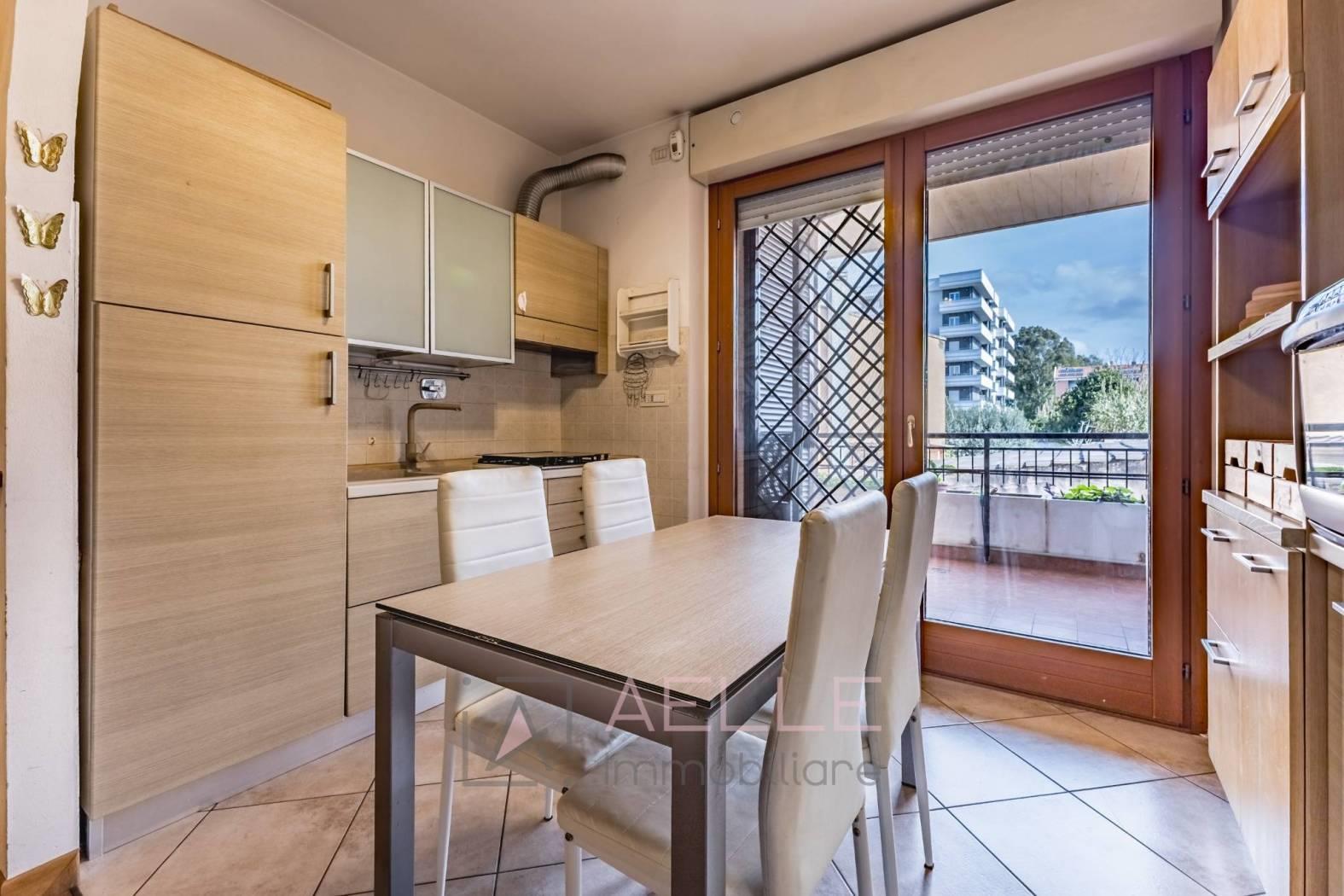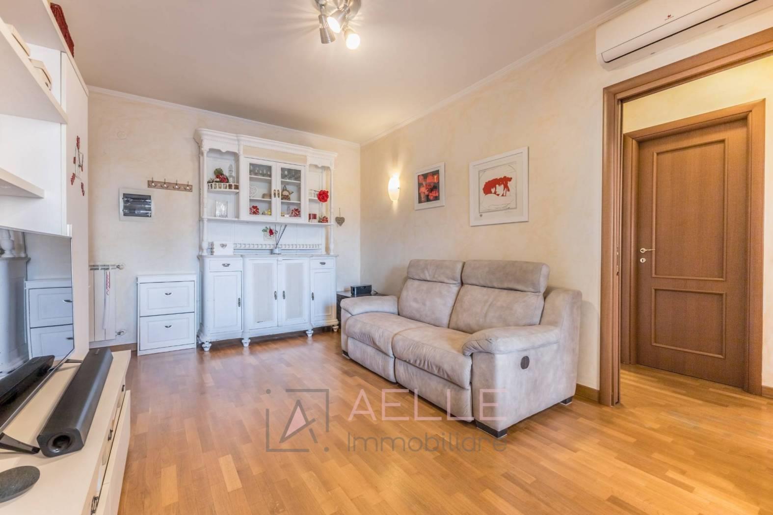 Pavimentazione in parquet, infissi in legno con doppio vetro, inferriate, videocitofono, condizionatore e serrande elettriche nel soggiorno. Box auto di proprietà di 23mq con accesso diretto dall’ascensore. Esposizione est.