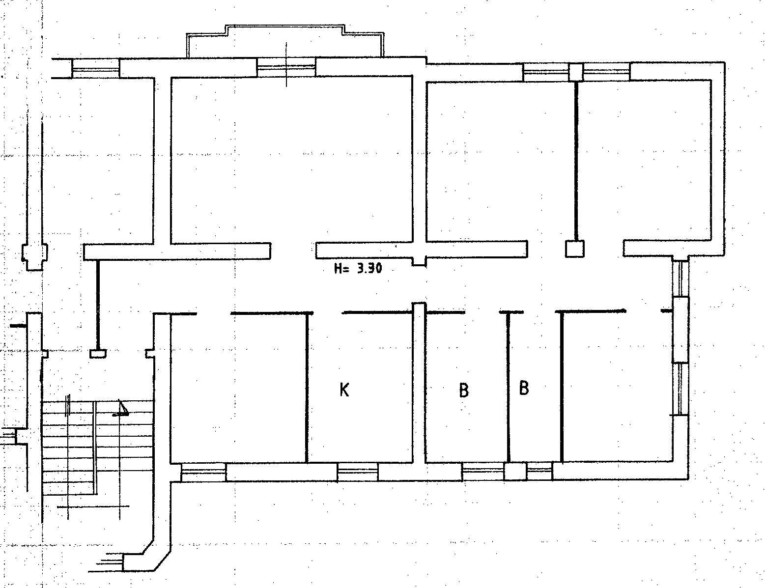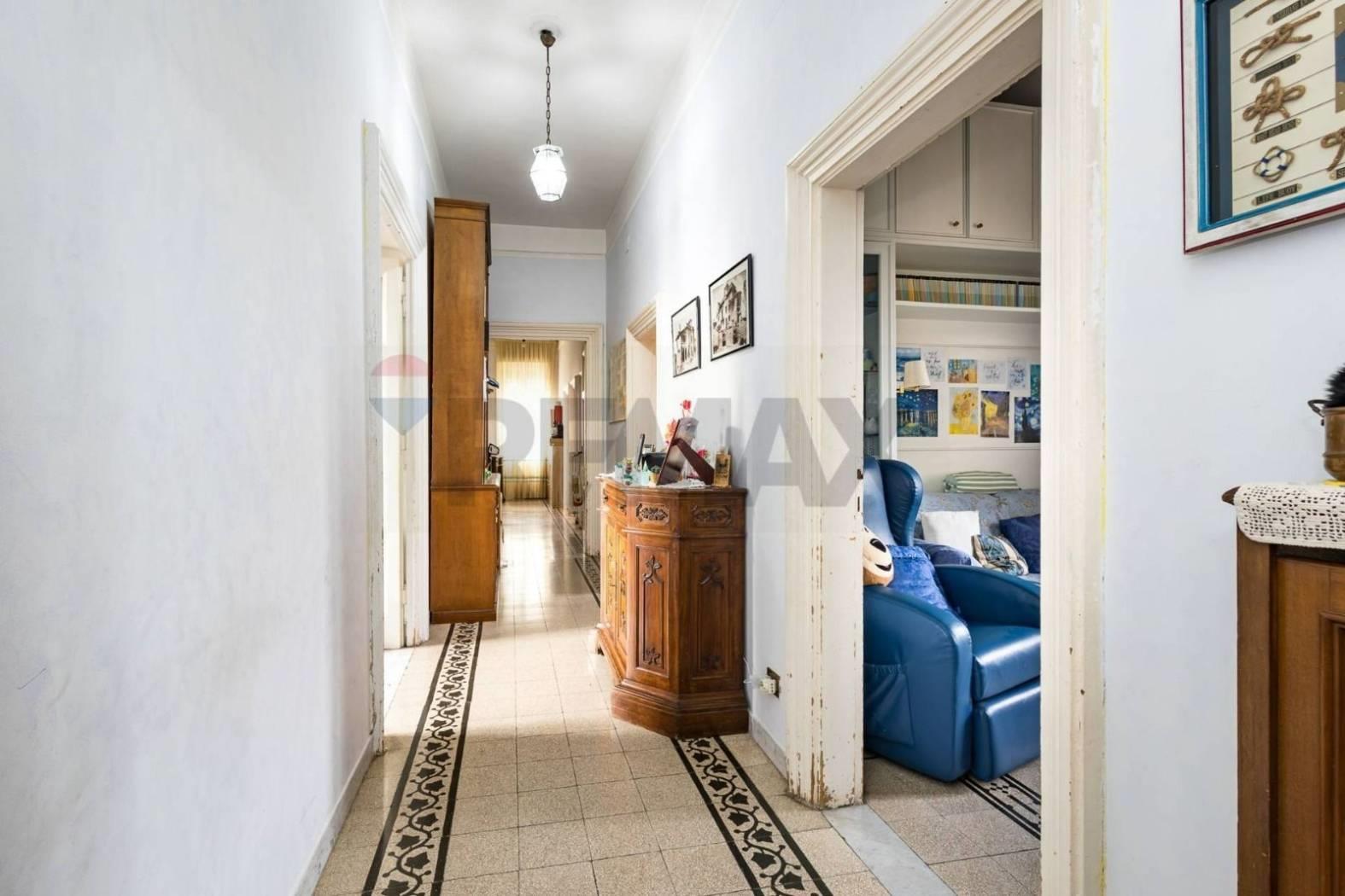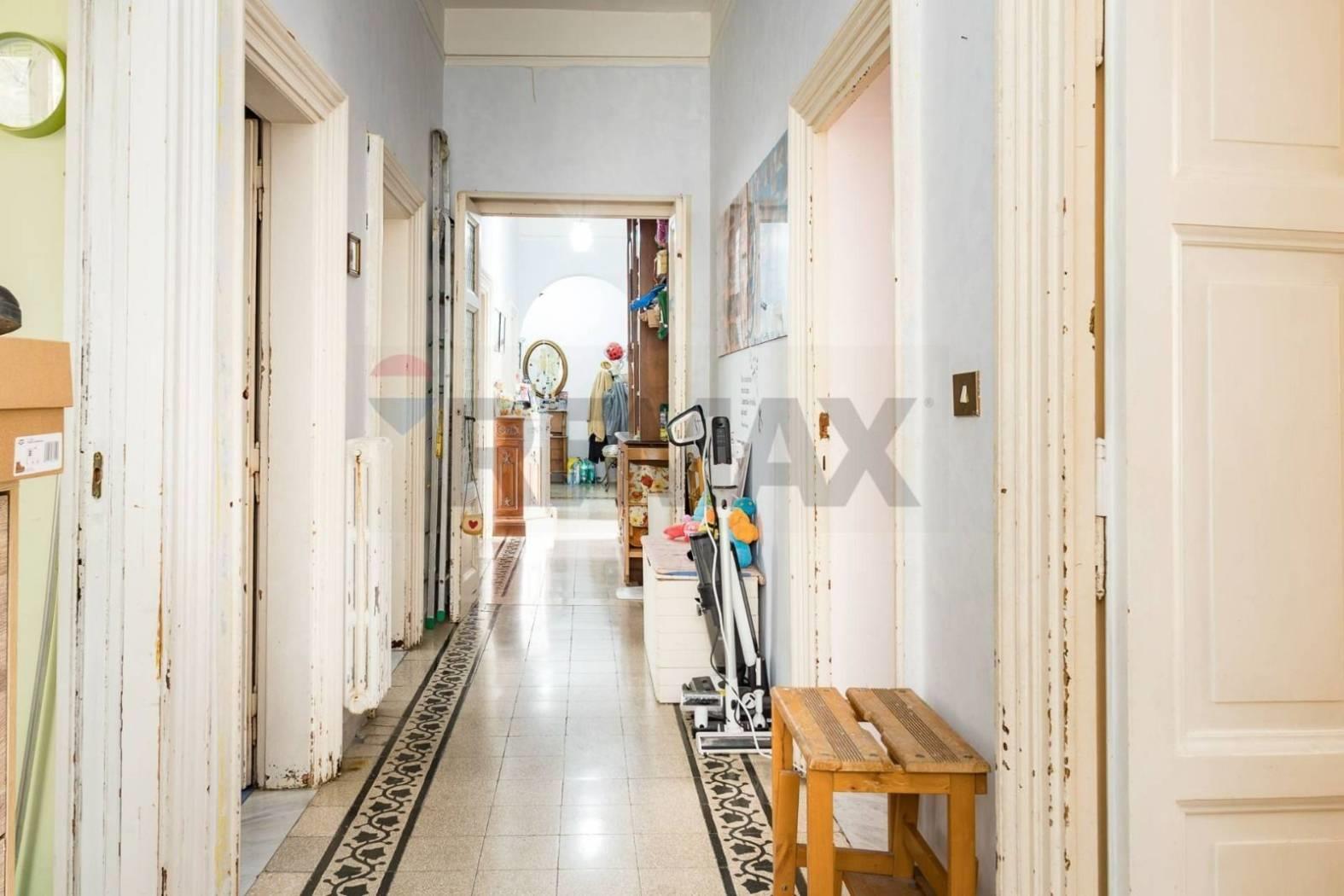 Internamente l'immobile si compone di: grande salone, tre camere, studio, cucina, balcone, doppi servizi, cantina e giardino.