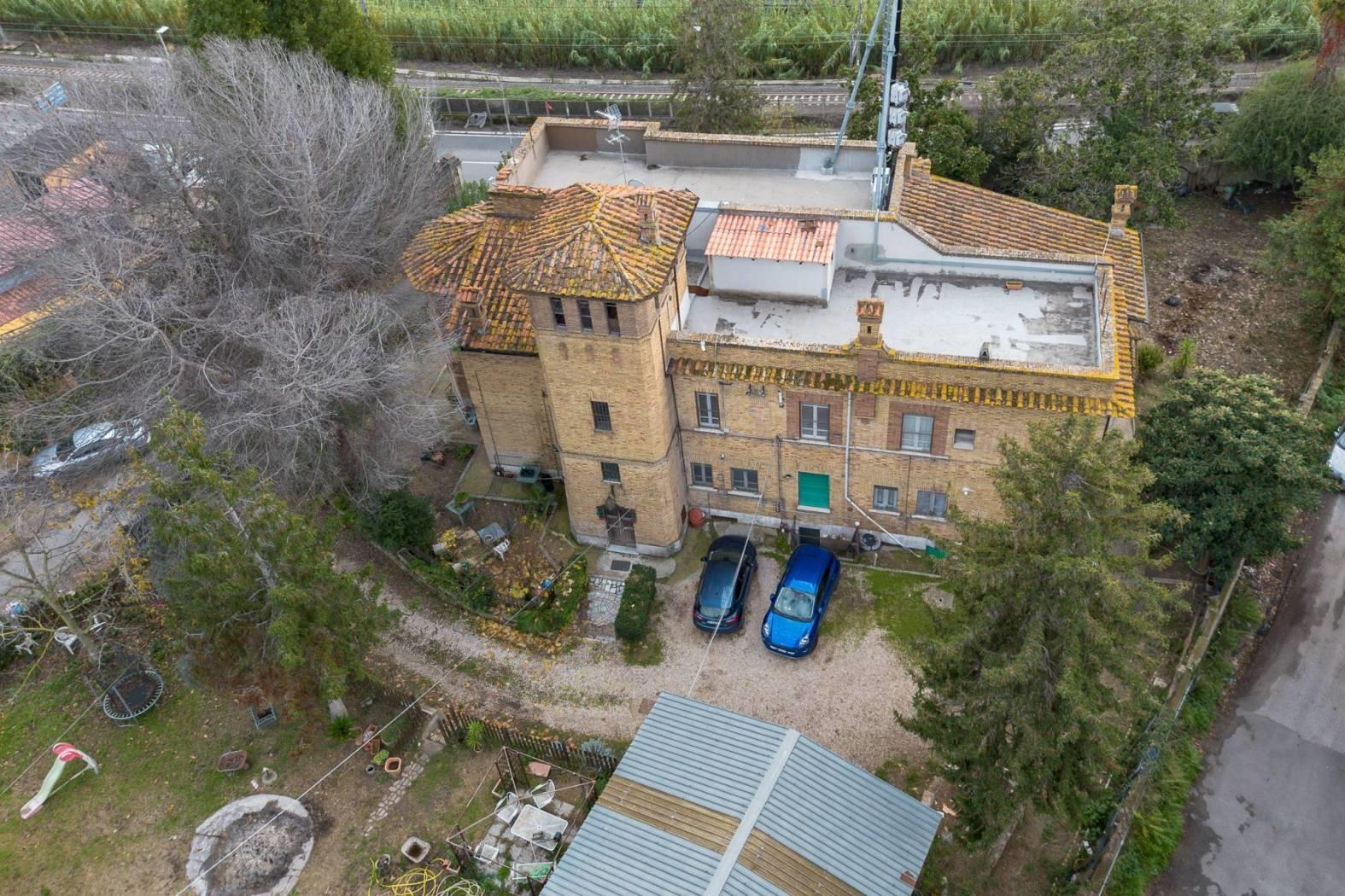 Nel cuore verde e riservato della Magliana, proponiamo la vendita di due ampi appartamenti attigui rispettivamente di 164 mq e 94 mq situate al primo piano all’interno di una villa d’epoca indipendente di raro pregio, circondata da un ampio parco privato e caratterizzata da volumi importanti, stile architettonico distintivo e un significativo valore storico. Realizzata in mattoni pieni e impreziosita da una torre panoramica, la proprietà rappresenta un autentico esempio di architettura storica ad oggi pronta per un progetto di recupero e valorizzazione capace di restituirle tutto il suo splendore originario.