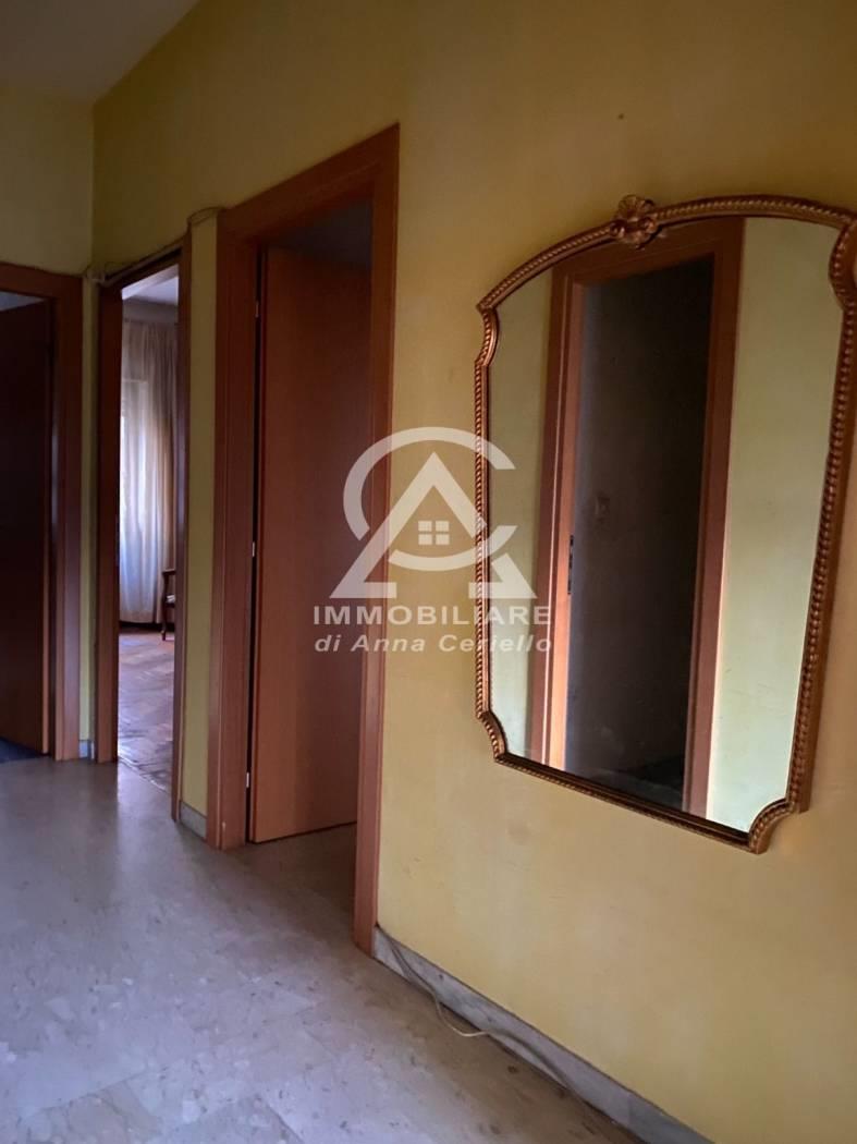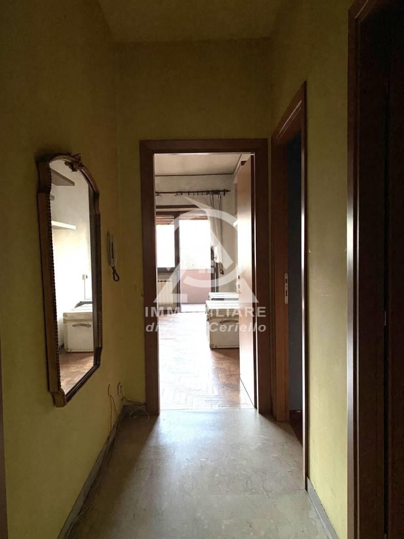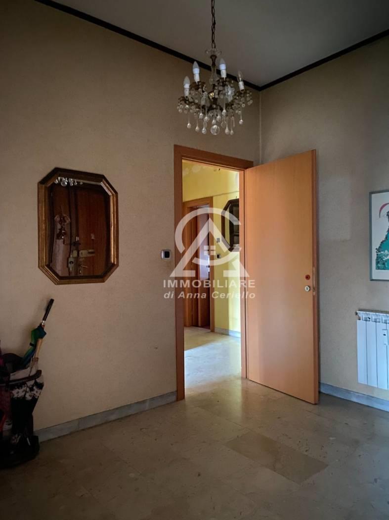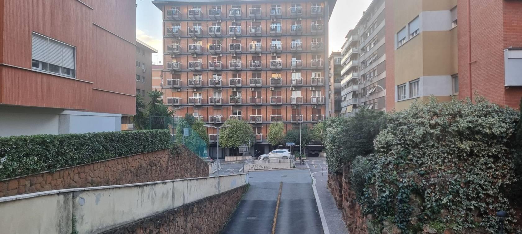 Proponiamo in vendita in Palazzo in cortina con portiere Appartamento di mq 136ca composto da ampio ingresso, salone, 3 camere matrimoniali, cucina abitabile, doppi servizi, ampio ripostiglio,oltre alla presenza di un balcone e un terrazzo di mq.28ca. Completa la proprietà un posto auto coperto posto al piano seminterrato raggiungibile con ascensore direttamente al piano. L'immobile è da ristrutturare. Pavimenti parte in marmo e parte in parquet ad eccezione della cucina e bagni che invece sono in ceramica anni '80, porte in legno in buono stato di manutenzione, finestre in legno. I termosifoni sono centralizzati con contabilizzatori, Ha un doppio affaccio su area condominiale da un lato e dall'altro più aperto verso via del Fornetto. l'appartamento vista la metratura e la disposizione interna si presta ad una diversa distribuzione degli spazi a secondo delle proprie esigenze.