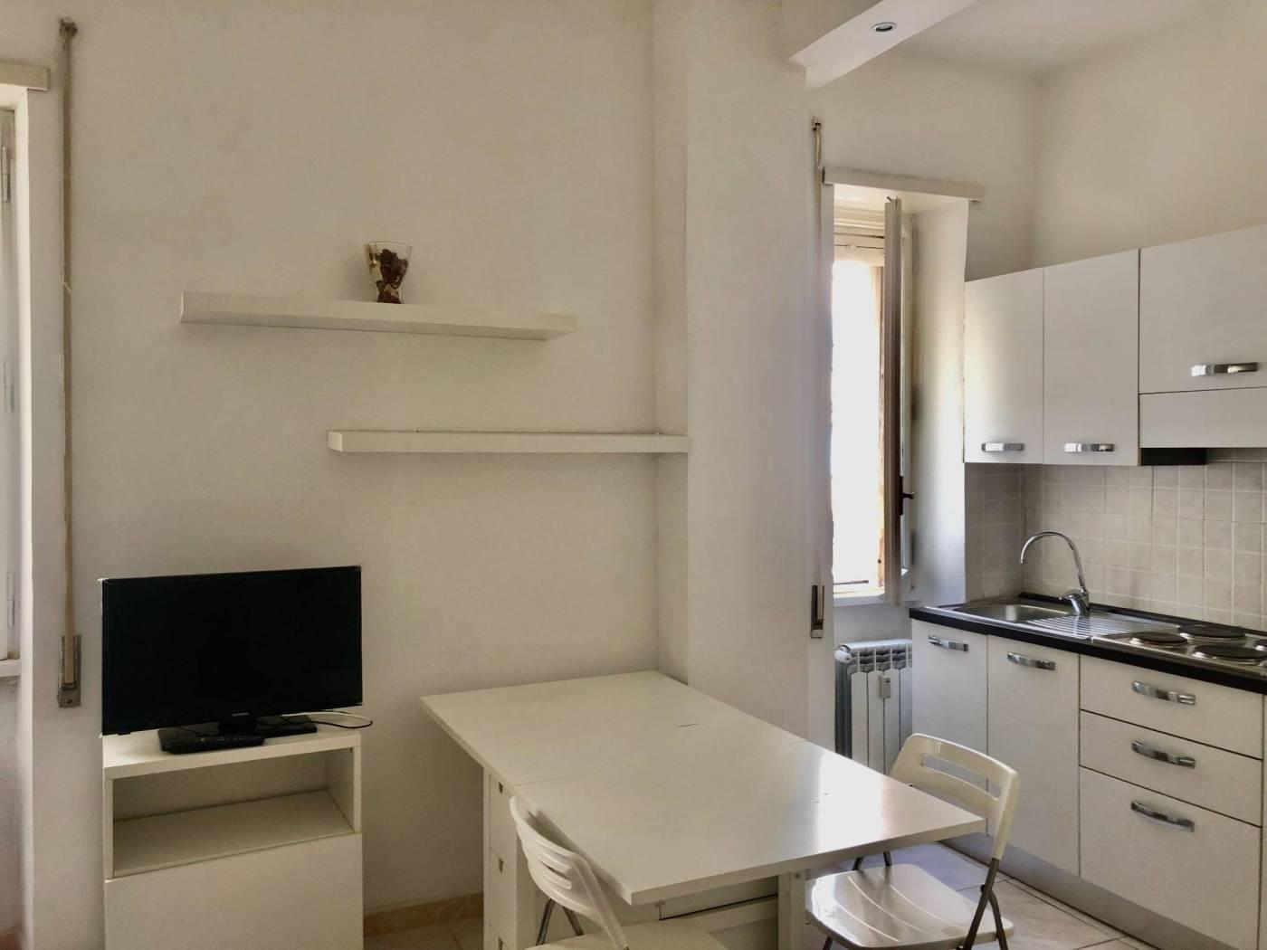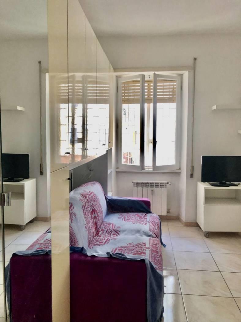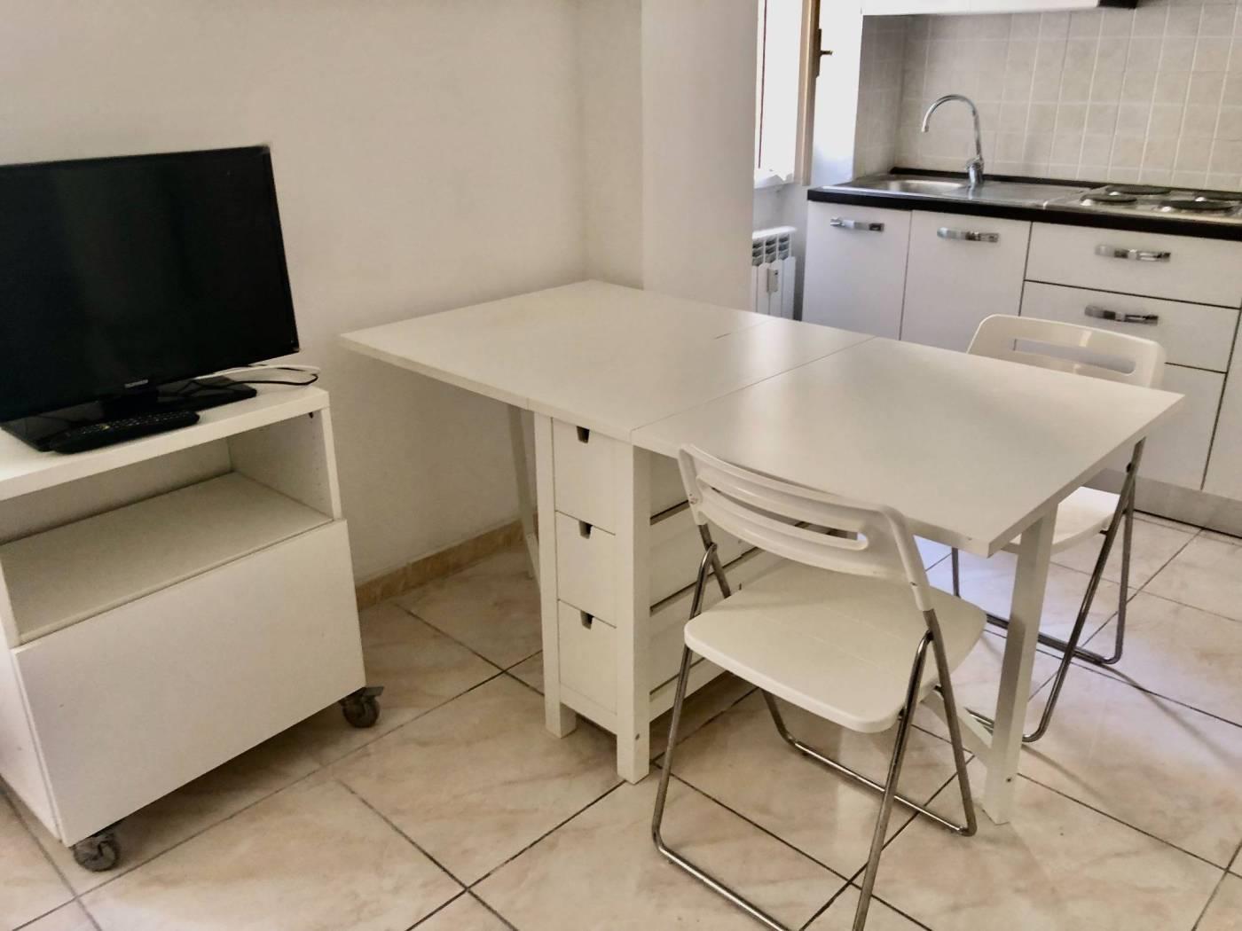 L'immobile è composto da un ampio ambiente con grandi finestre è diviso in zona giorno con un comodo angolo cottura completo di arredamento, televisore ed elettrodomestici, tavolo con sedie ed armadi contenitori, ed una zona letto con armadio a ponte, bagno con arredi, box doccia e lavatrice.