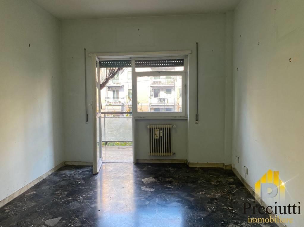 Marconi Via Francesco Grimaldi, adiacente via Oderisi da Gubbio, in zona servita da tutti i servizi commerciali e vicino università, palazzo in ottimo stato, terzo piano, libero subito, ampio ingresso, soggiorno, disimpegno con finestra, cucina abitabile con ripostiglio, camera matrimoniale e ampio bagno ristrutturato, balconata abitabile, possibilita' di creare la seconda cameretta e secondo bagno, l'immobile è da ristrutturare ad eccezione del bagno.
