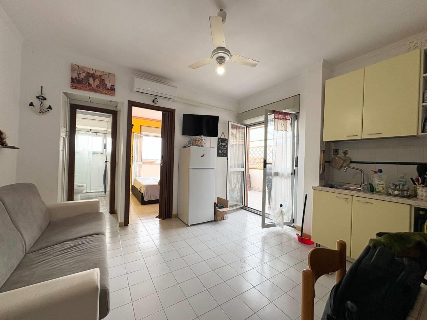Marina di Ardea, a 10 metri dalla spiaggia, appartamento vista mare con terrazzo e posto auto scoperto, sito al secondo piano di una palazzina in cortina. L'immobile è composto da salone con angolo cottura ed uscita al terrazzo abitabile, camera matrimoniale con uscita al balcone vista mare e servizio finestrato. Completa la proprietà un posto auto scoperto.