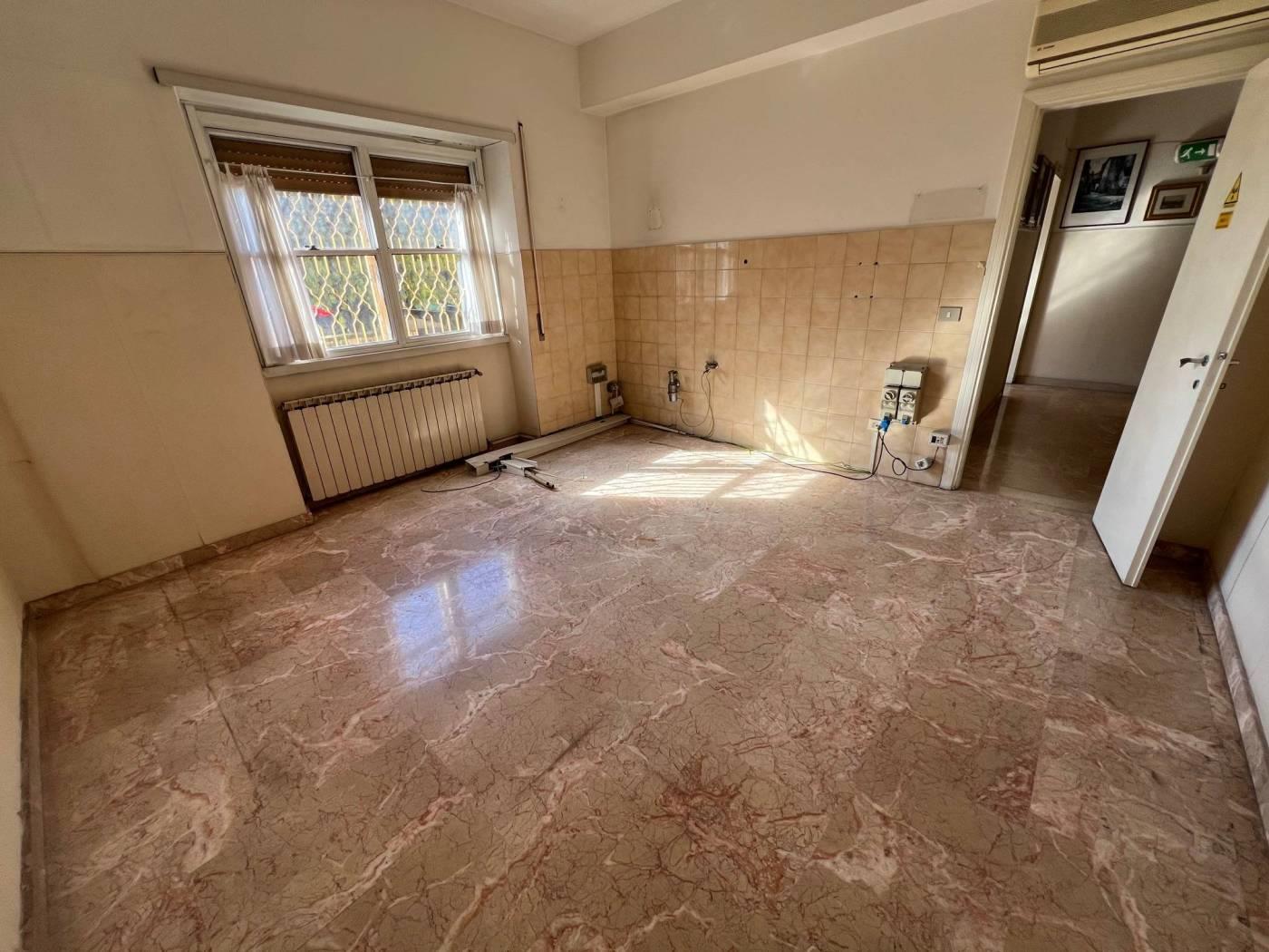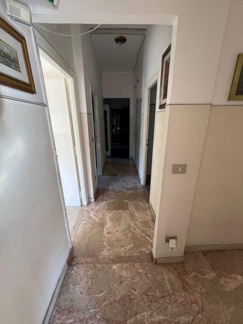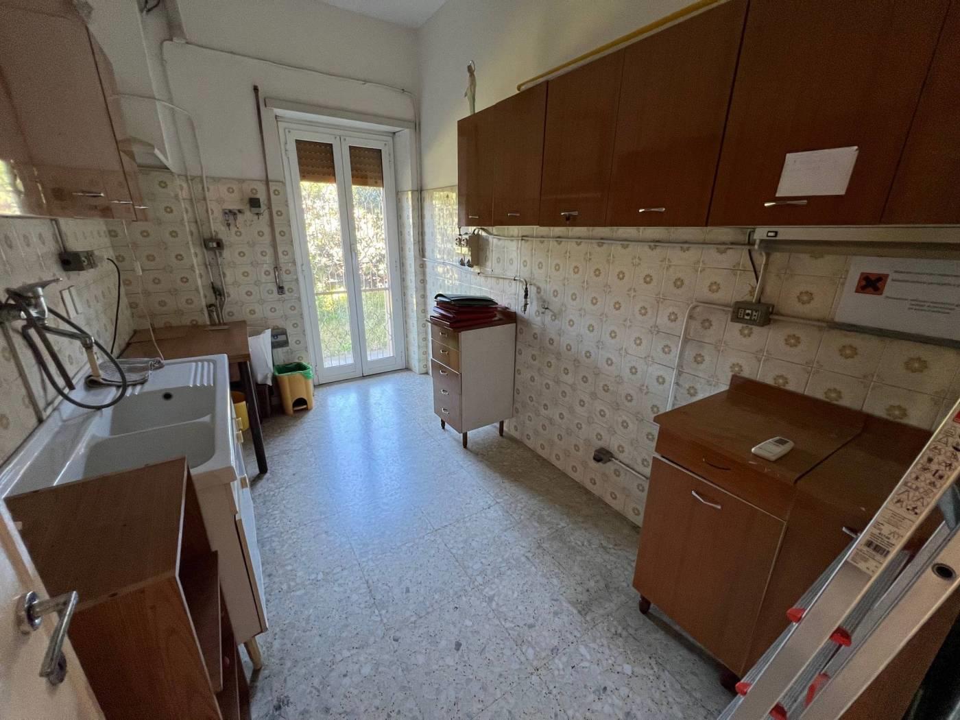 Via Mattia Battistini altezza scuola "Bracelli" in palazzina signorile misto quarzo-cortina in ottimo stato, appartamento sito al piano rialzato con doppia esposizione angolare (no chiostrina) composto da ingresso, soggiorno, cucina abitabile entrambi con uscita sul giardino di proprietà di c.a. 80 mq, tre camere da letto con affaccio da primo piano e servizio, armadio a muro. Appartamento molto luminoso con affacci aperti ed esposizione sud-ovest. Infissi in alluminio con vetrocamera, grate alle finestre, termoautonomo. Immobile da ristrutturare. Euro 315.000,00