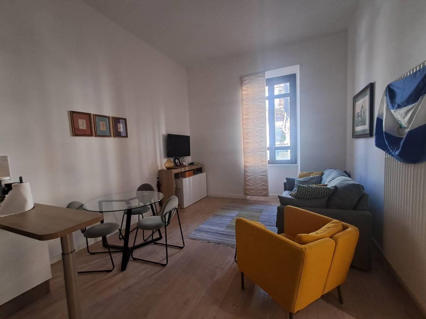 Piazza Mazzini adiacente proponiamo appartamento totalmente arredato posto al piano rialzato di un palazzo di epoca Umbertina con servizio di portineria.