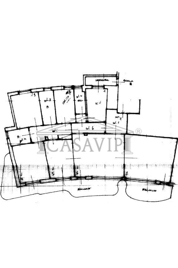 Nella prima troviamo ampio ingresso, salone triplo con uscita su balconate vivibili, sala da pranzo o studio utilizzabile anche come terza camera da letto visto che ha ingresso sia dalla zona giorno sia dalla zona notte e cucina. Nella zona notte sono situate due camere con armadi su misura, cameretta di servizio singola arredata di grande armadiatura e tre bagni.