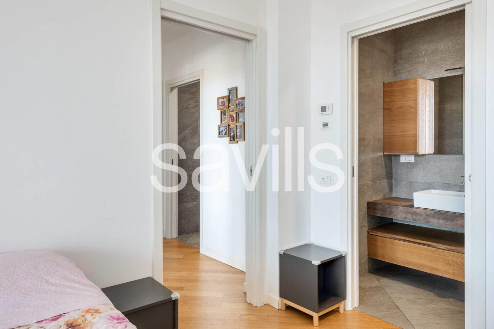 La zona notte è progettata con attenzione alla funzionalità e alla privacy: due camere da letto ben proporzionate e due bagni moderni completano la distribuzione interna, offrendo comfort e praticità.