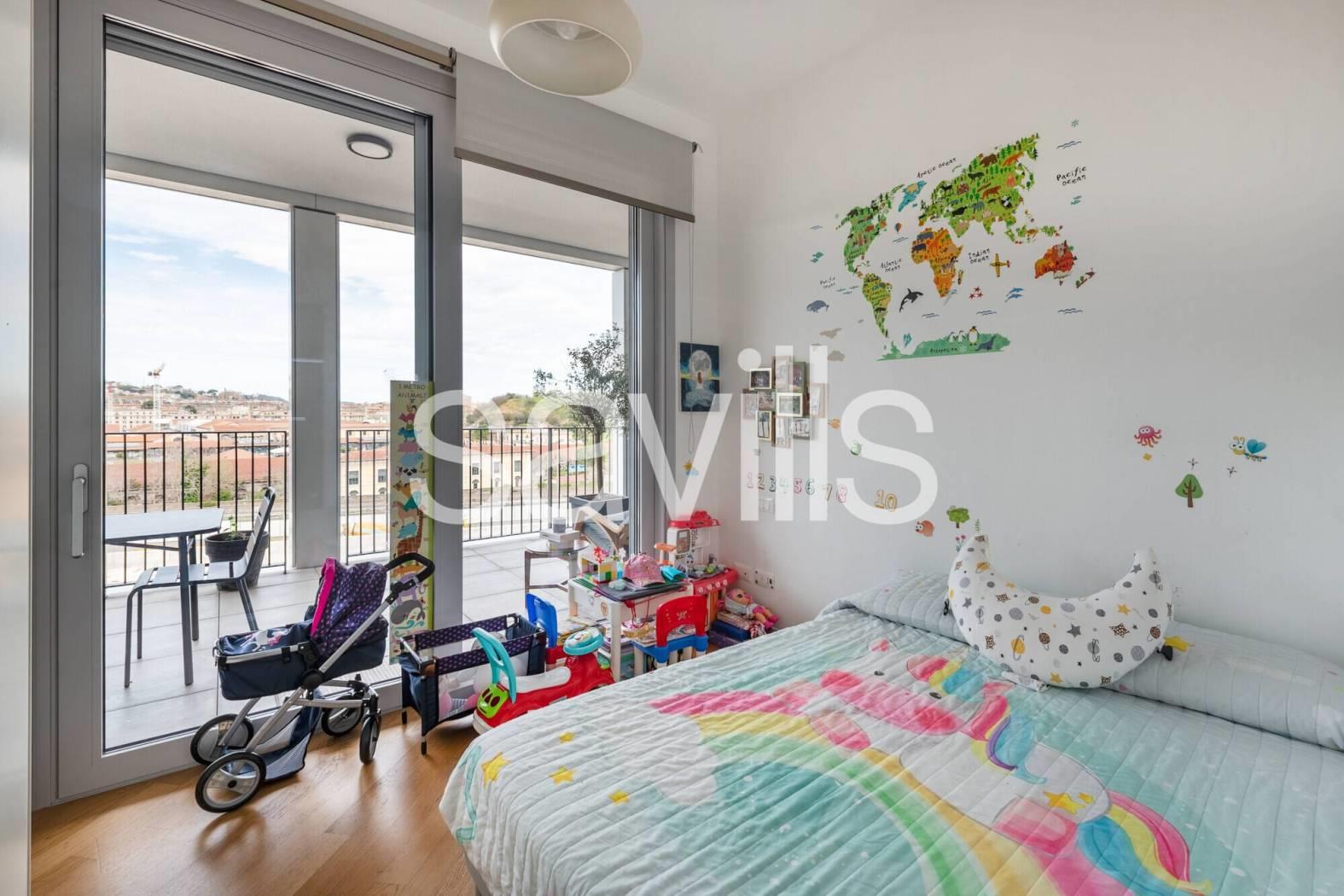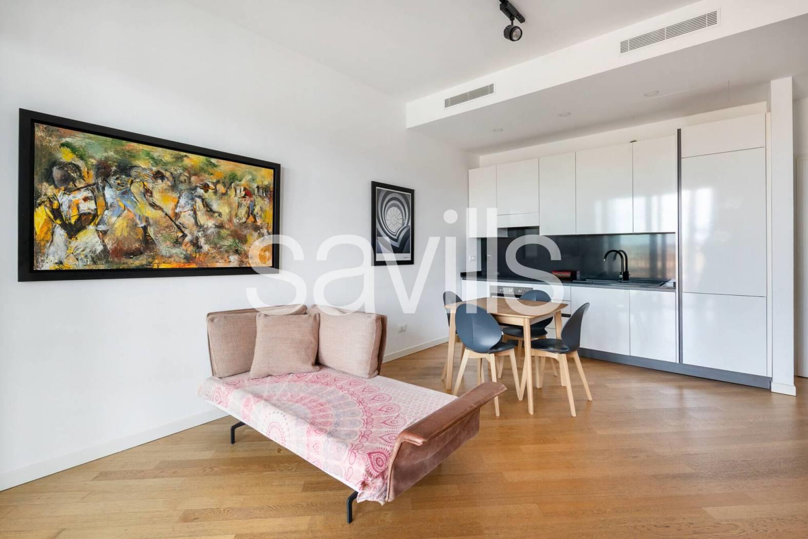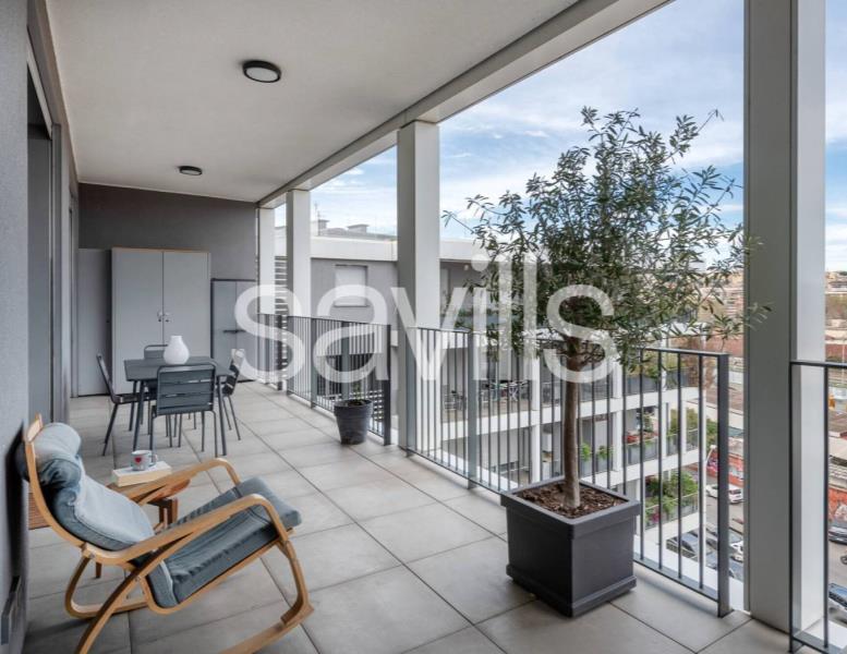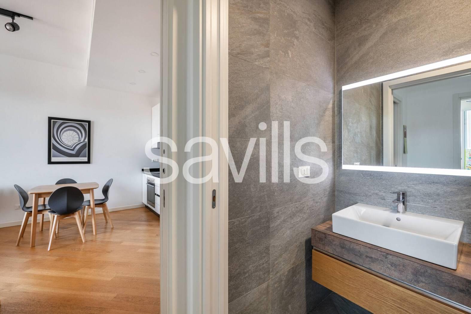 Questo appartamento si trova al quinto piano di un moderno edificio del 2017, con ascensore e servizio di portineria, situato nel quartiere Ostiense, una delle zone più dinamiche e identitarie di Roma.