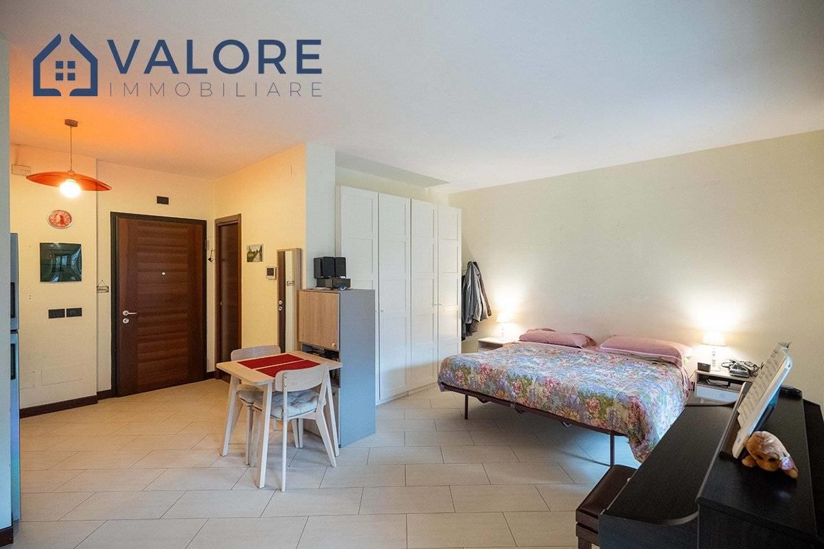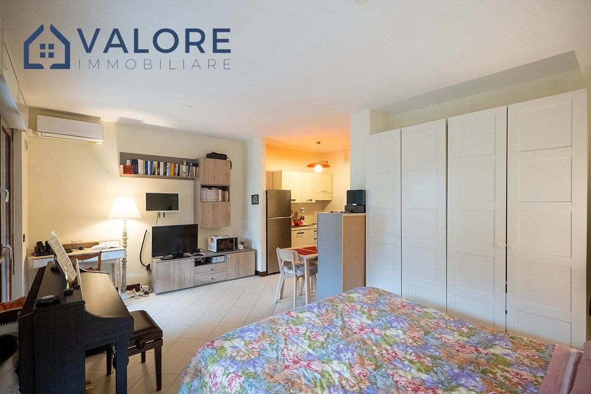 L’appartamento è composto da: unico ambiente con zona giorno/zona notte e cucina a vista, bagno con vasca idromassaggio ed un grazioso giardino, parte in mattonato e parte in verde.