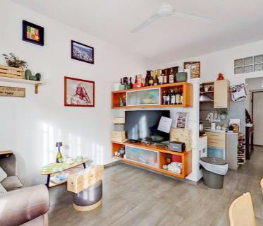 L’appartamento si trova al piano terra con accesso indipendente in posizione angolare ed è composto da un soggiorno con angolo cottura, un bagno e un terrazzo. Completa l’unità immobiliare una cantina di 6 mq e posto auto scoperto.