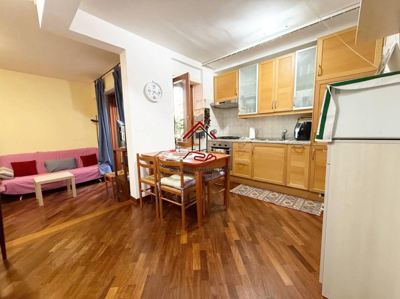 Zona giorno/pranzo con angolo cottura a vista, funzionale e ben integrato