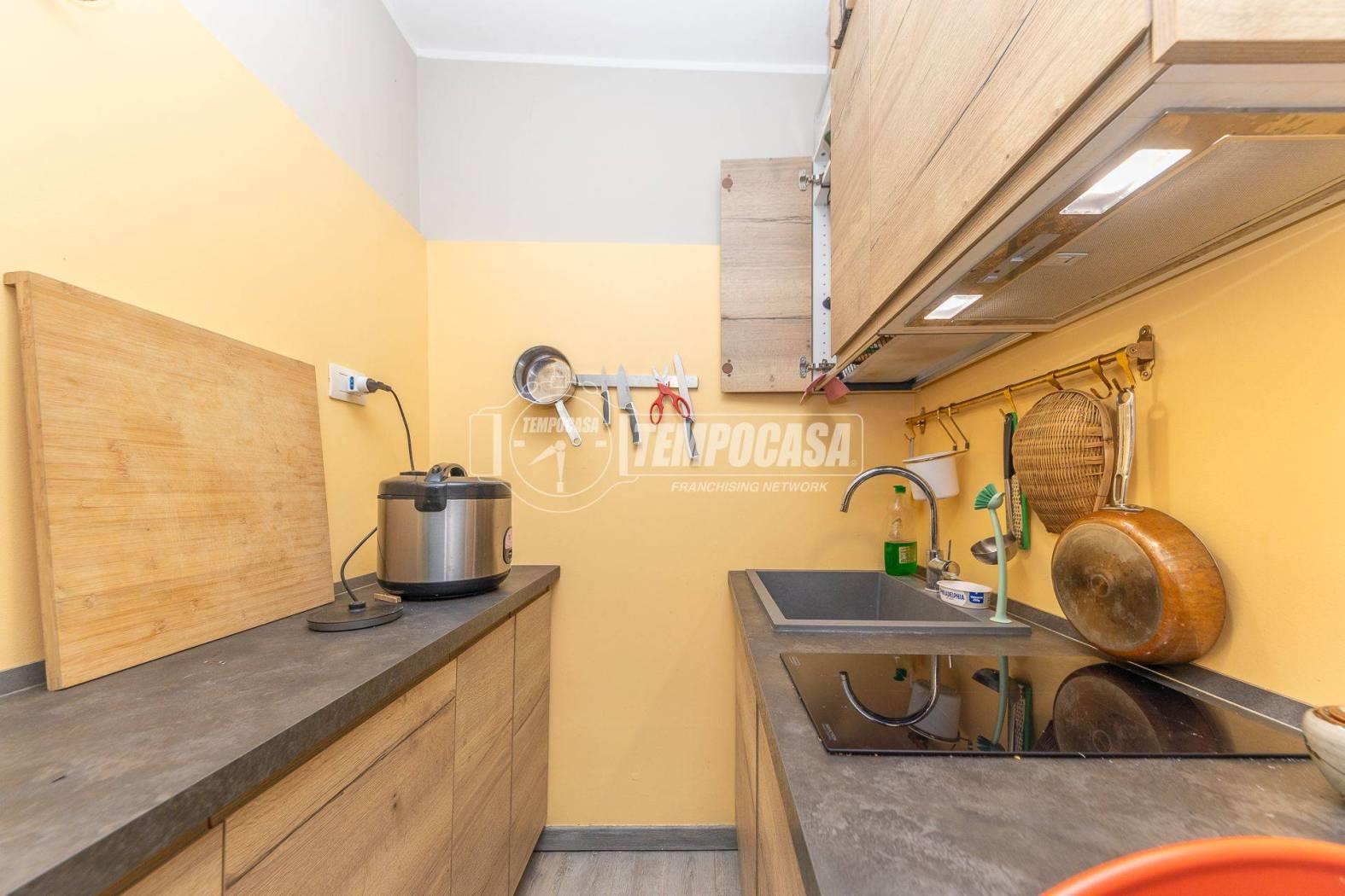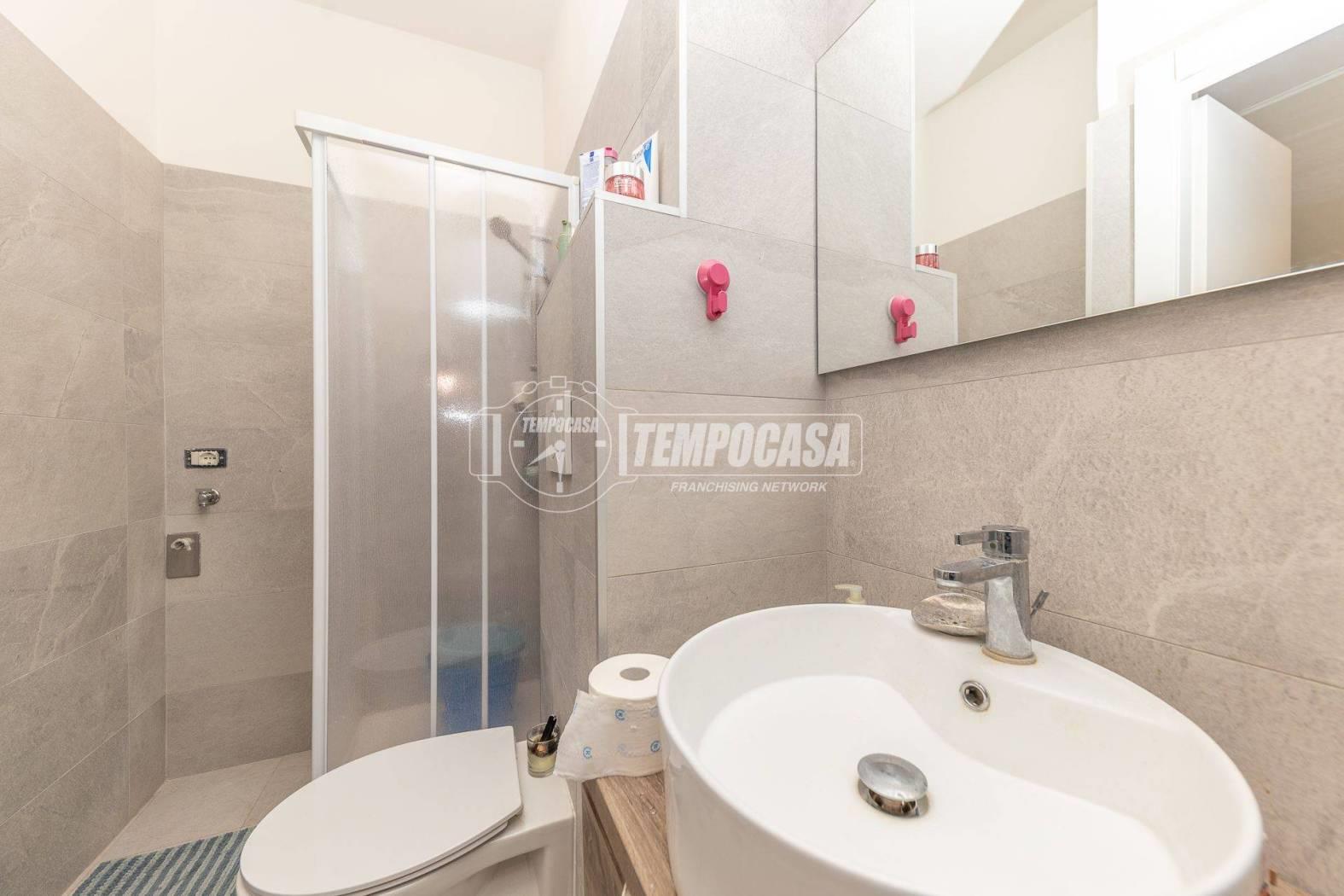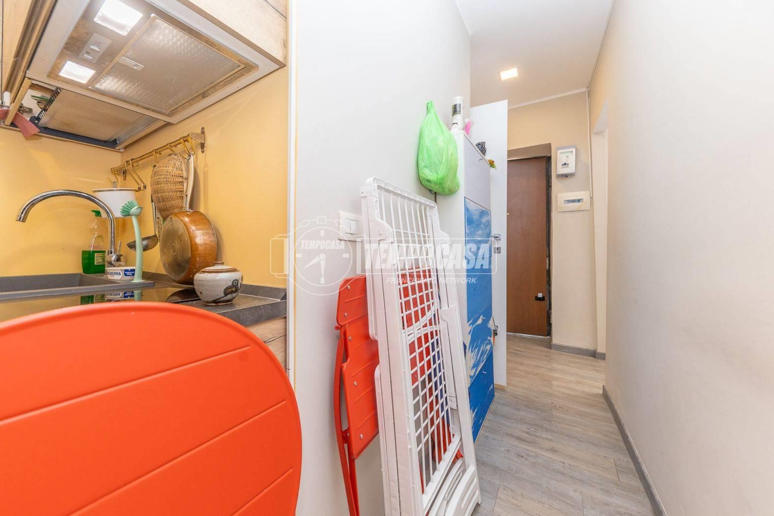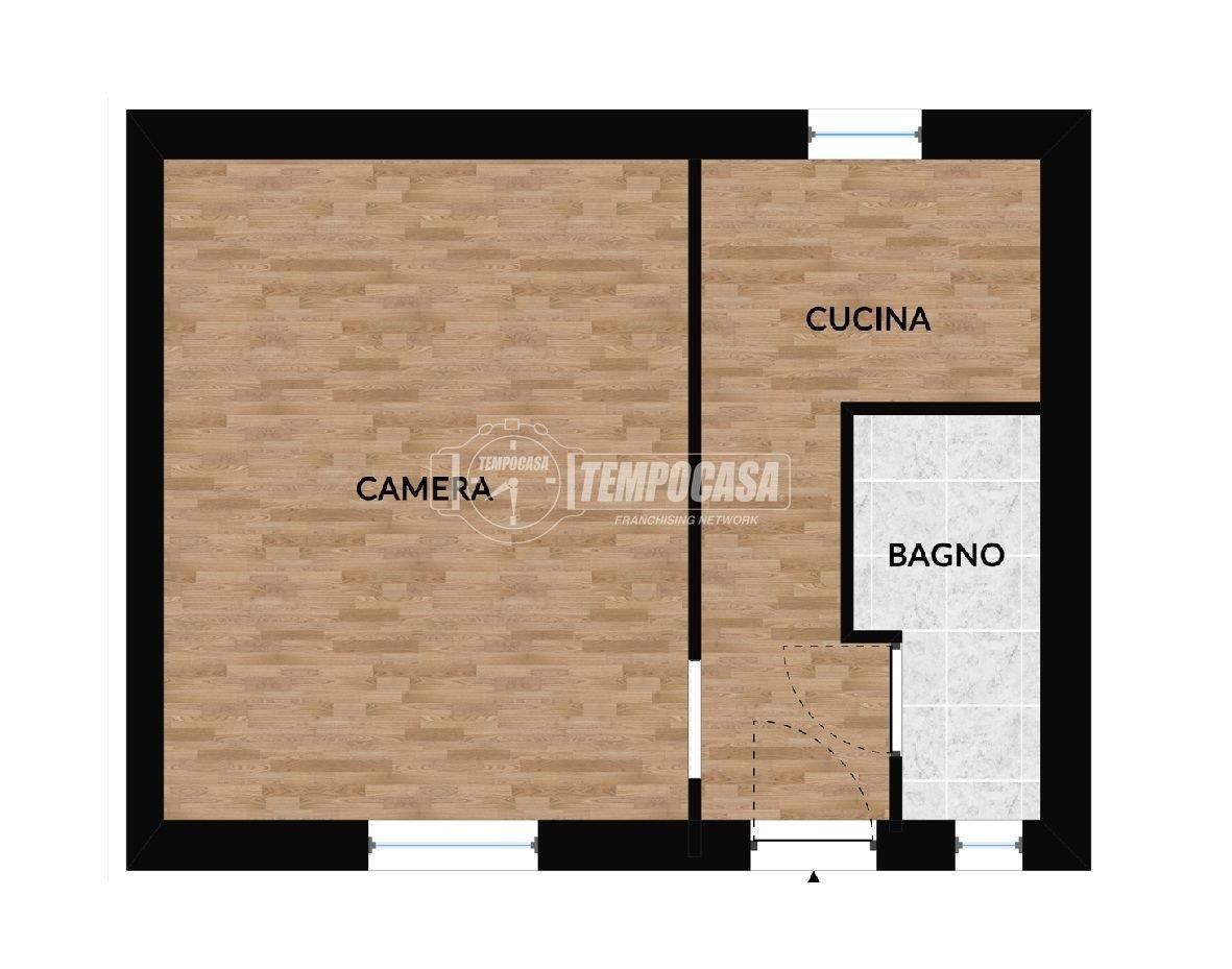 L'appartamento è attualmente composto da ingresso, camera, cucina, bagno finestrato con box doccia.
