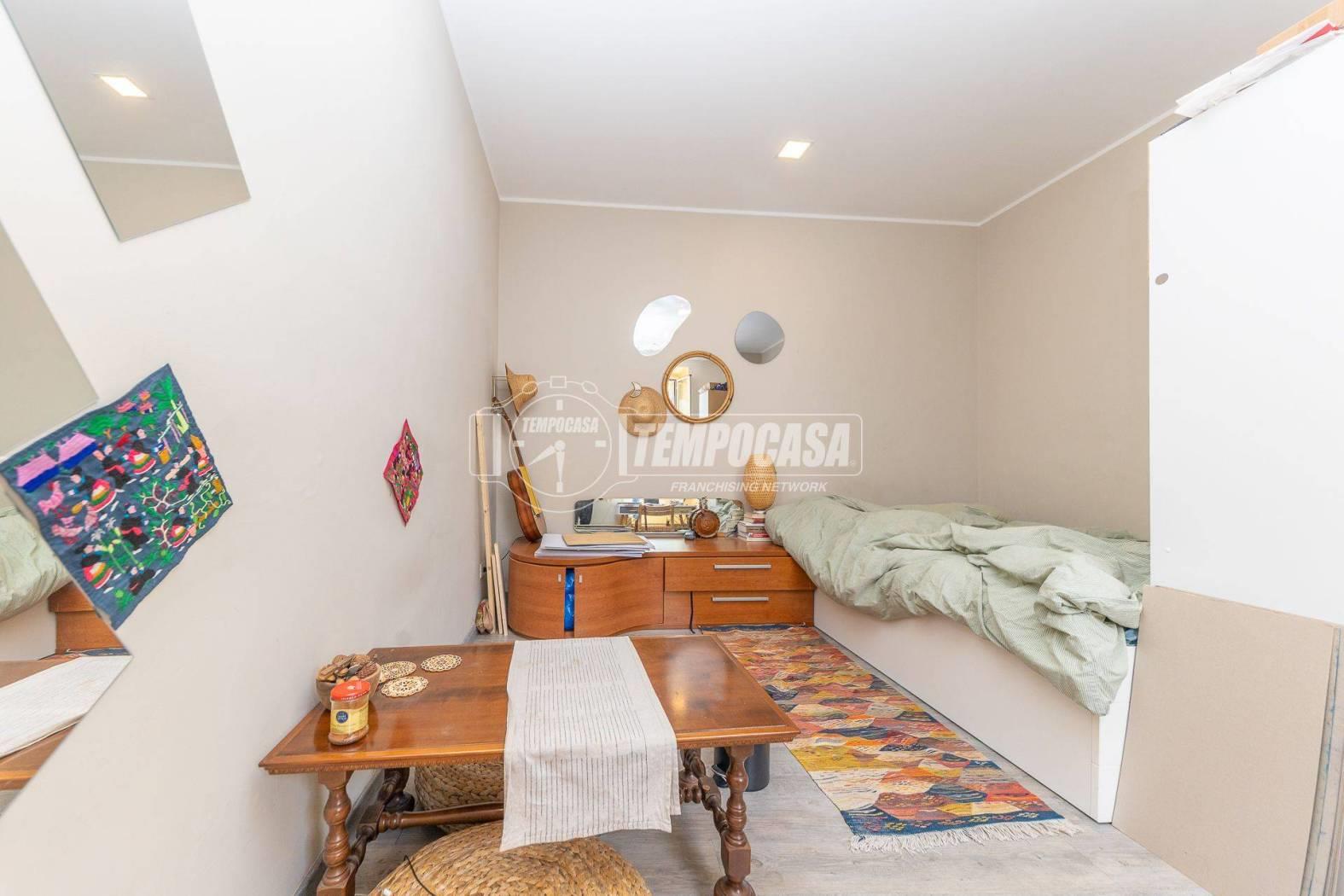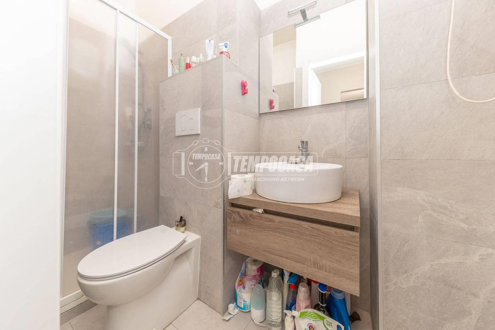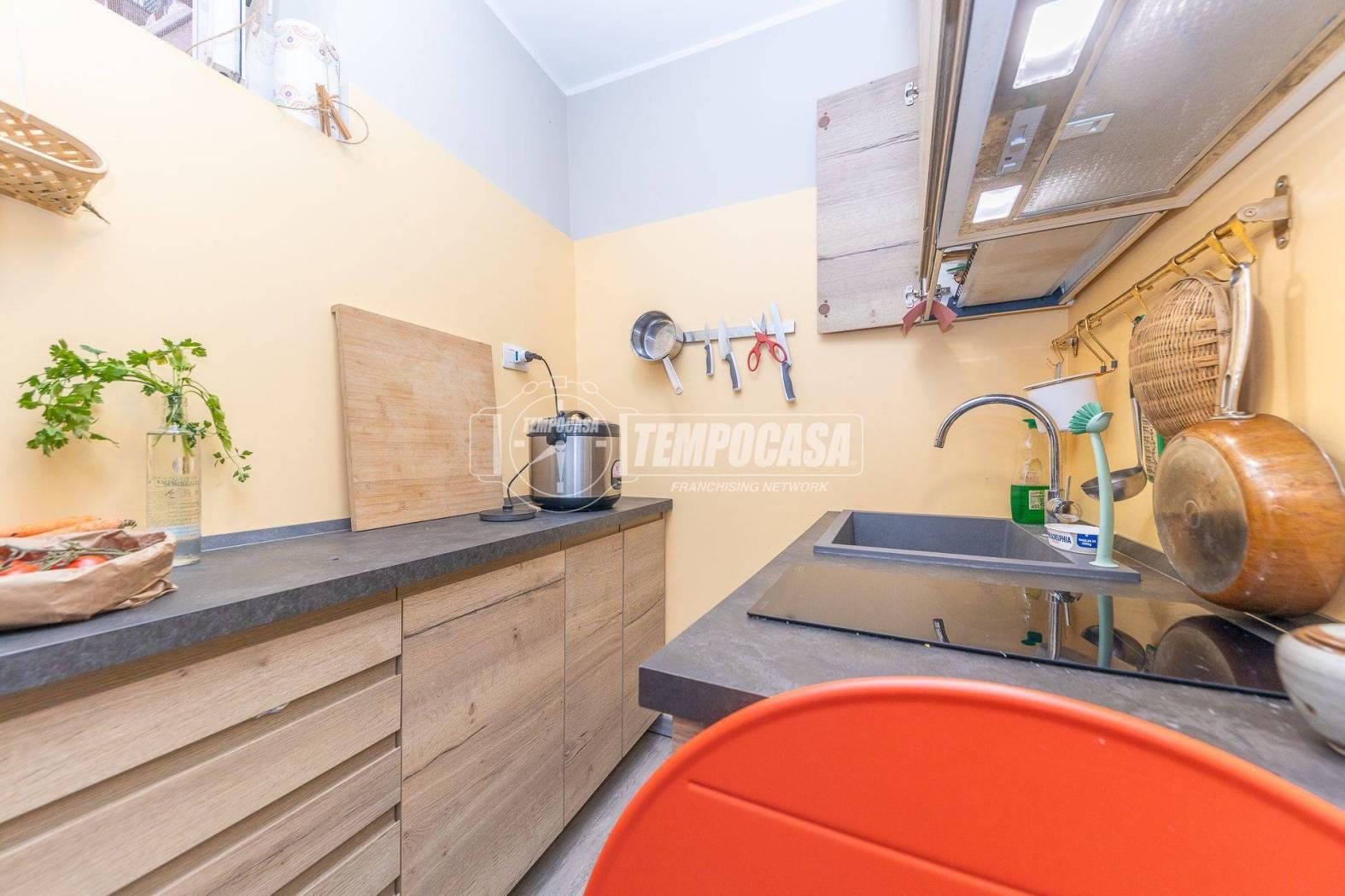 L'appartamento è attualmente composto da ingresso, camera, cucina, bagno finestrato con box doccia.