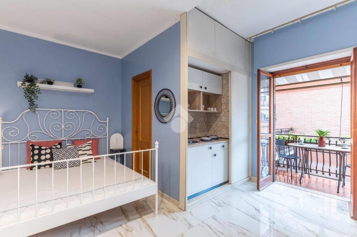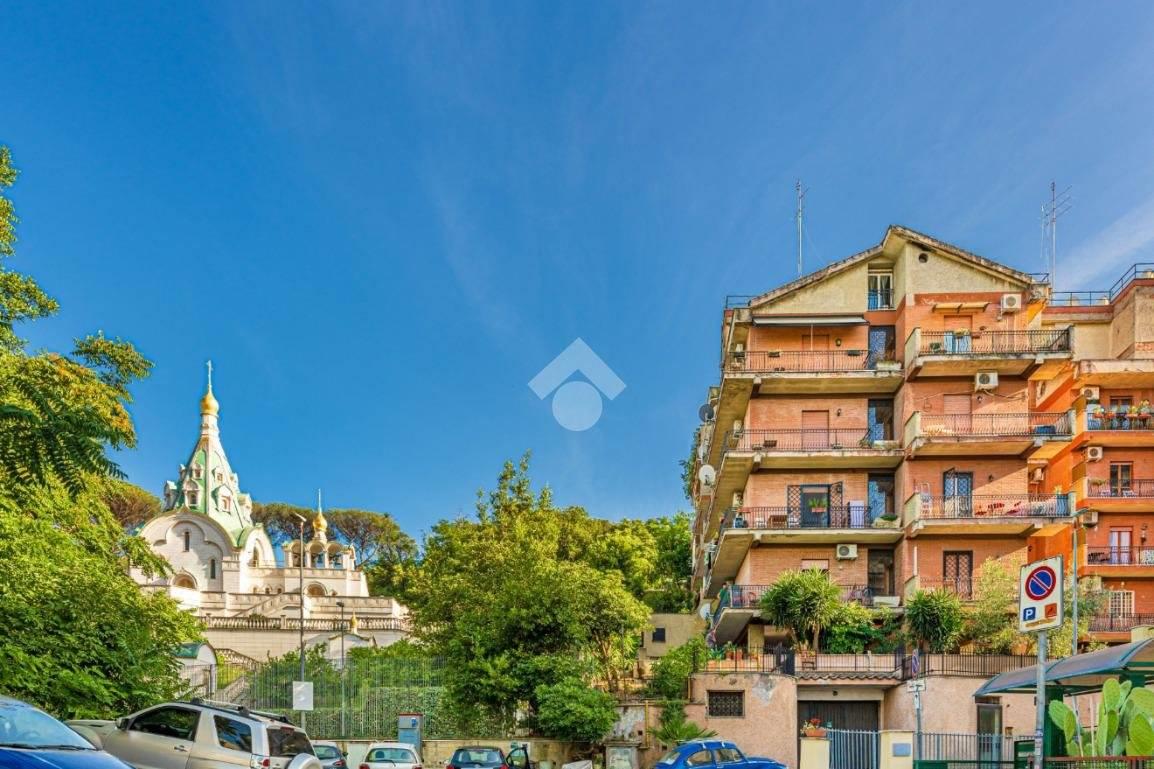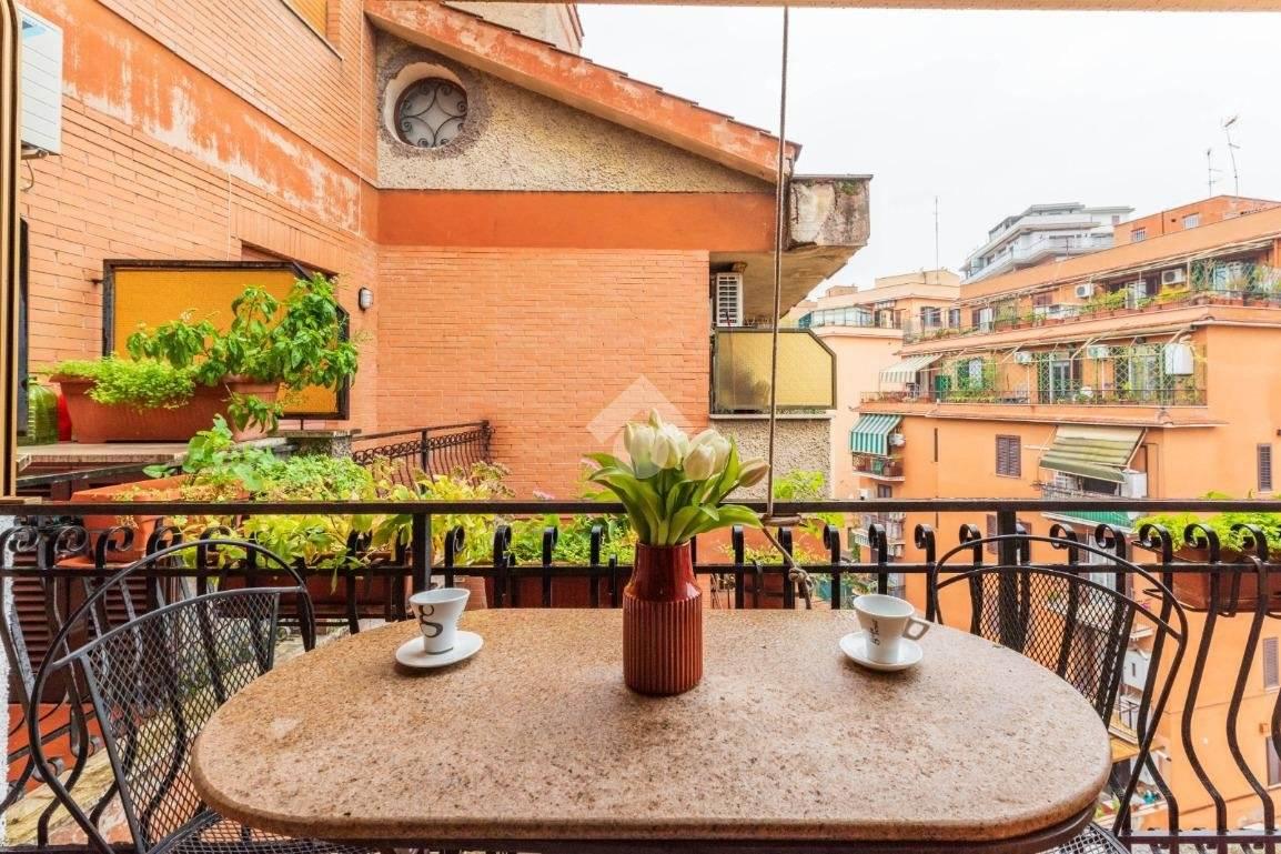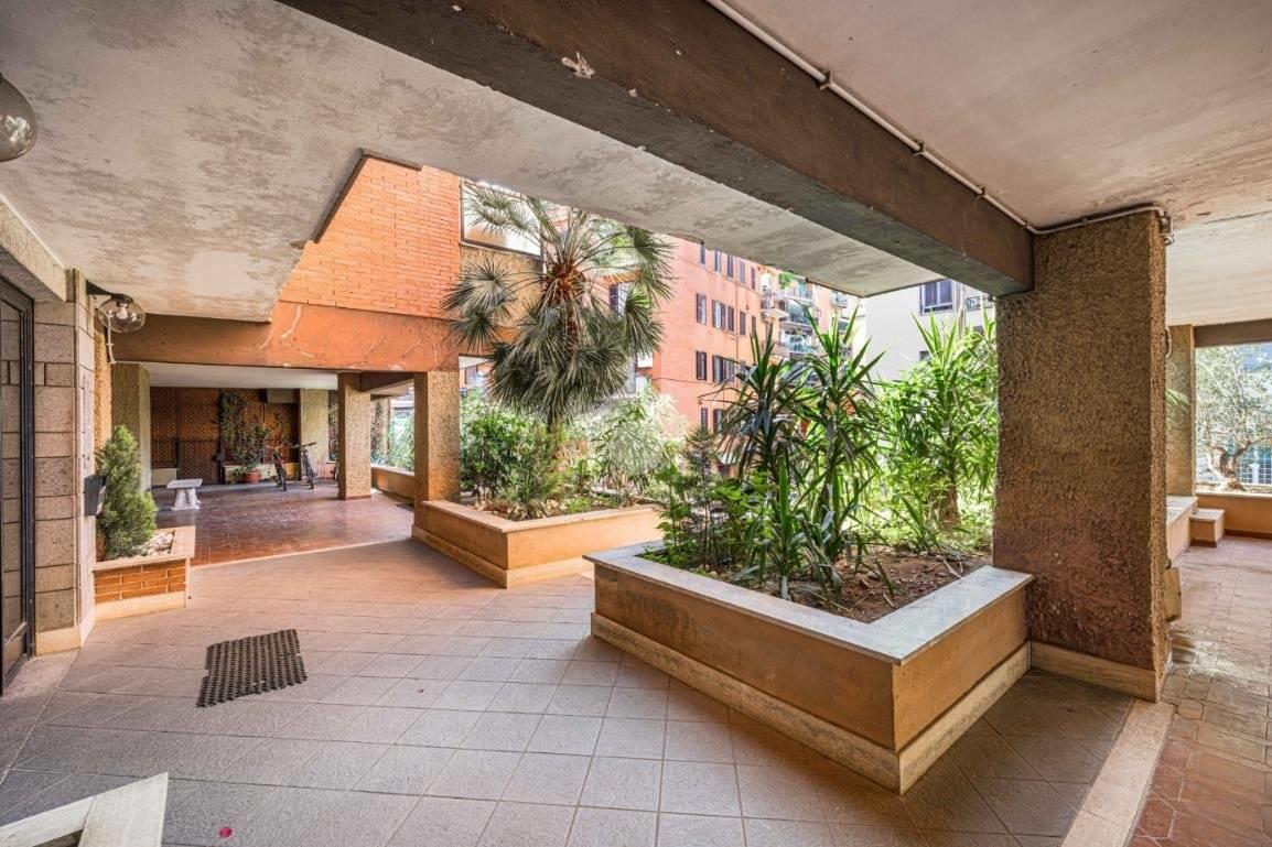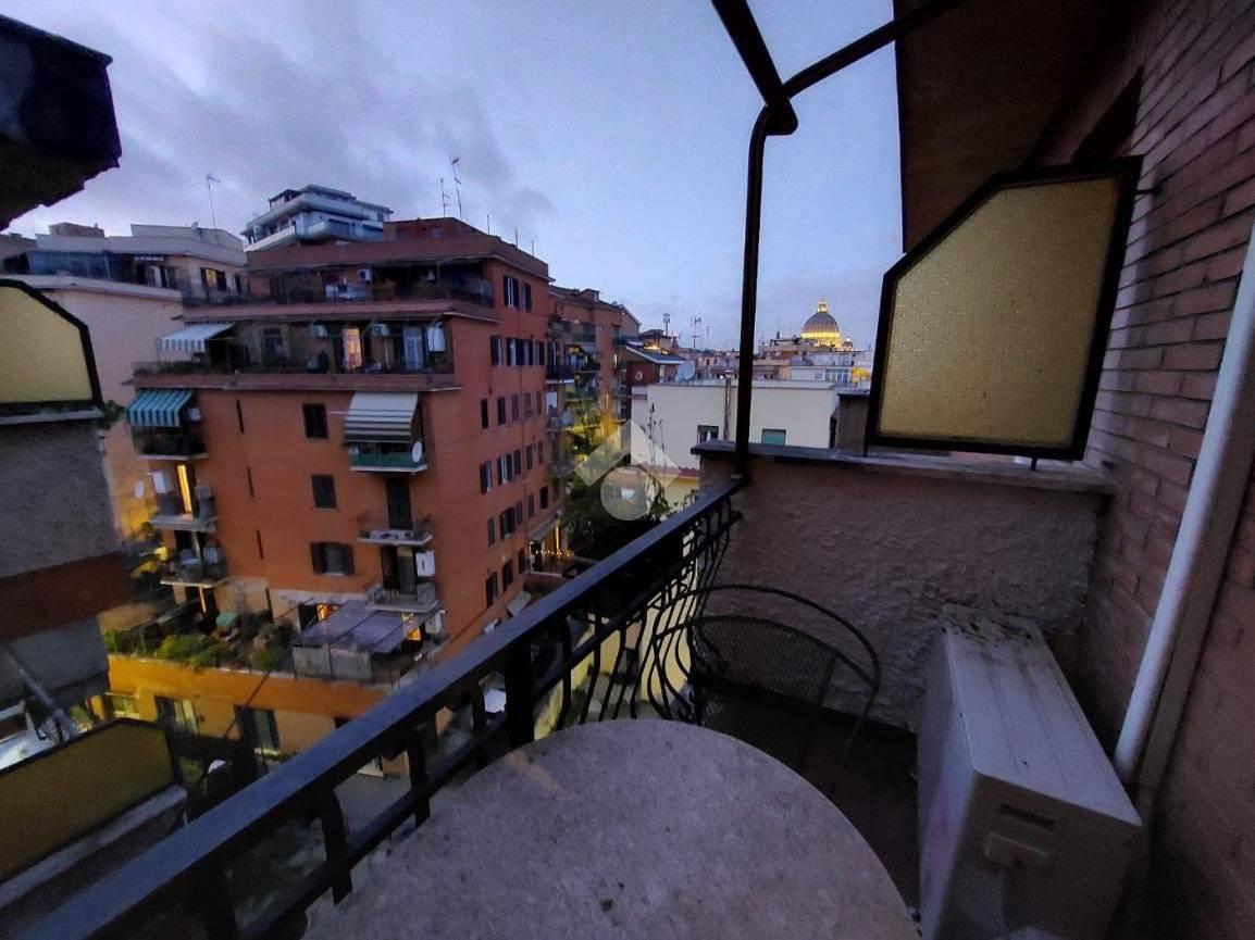Situato al quarto piano di una palazzina in cortina, con ascensore e servizio di portineria, l'appartamento dispone di una zona giorno con angolo cottura, zona notte, servizio dotato di doccia e finestra e comodo balcone con meraviglioso affaccio diretto sulla Cupola di San Pietro.