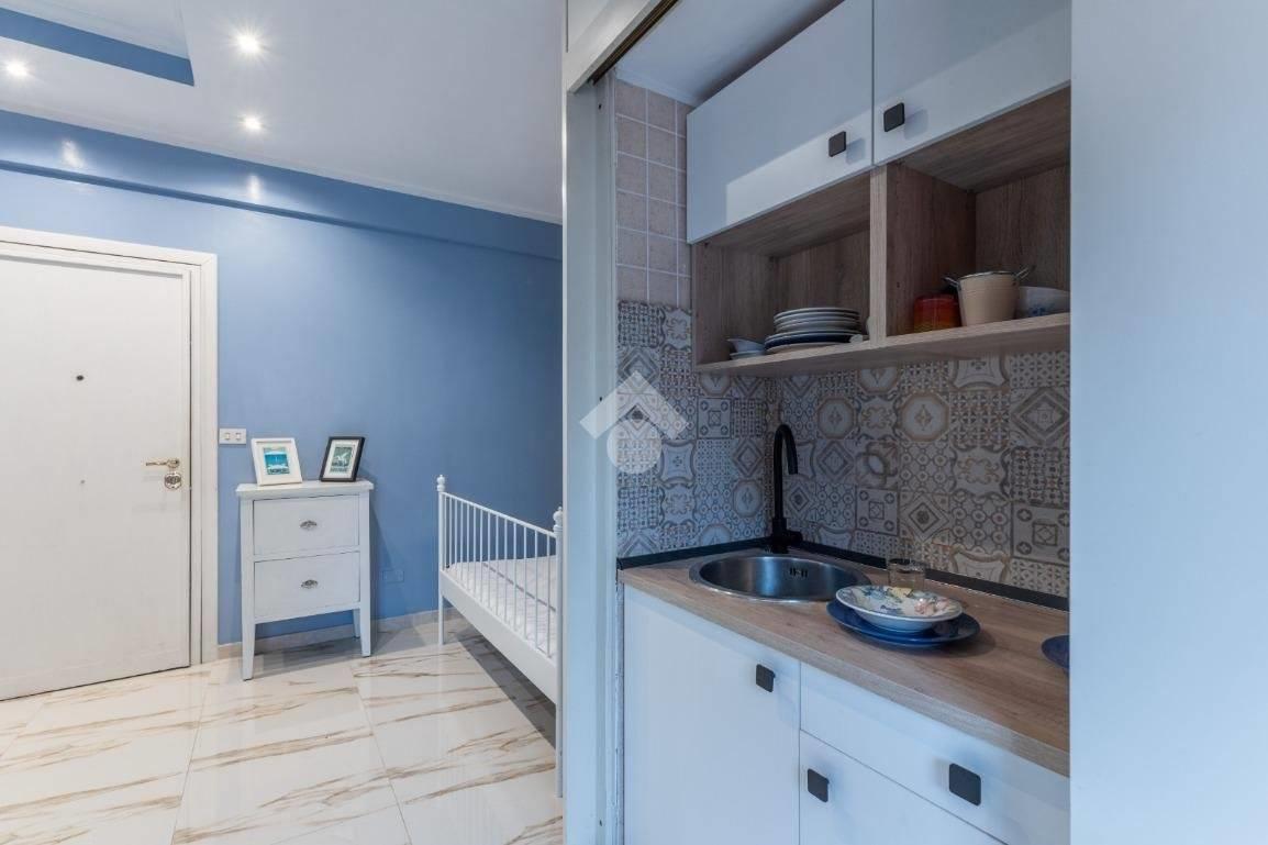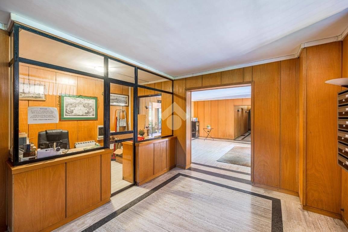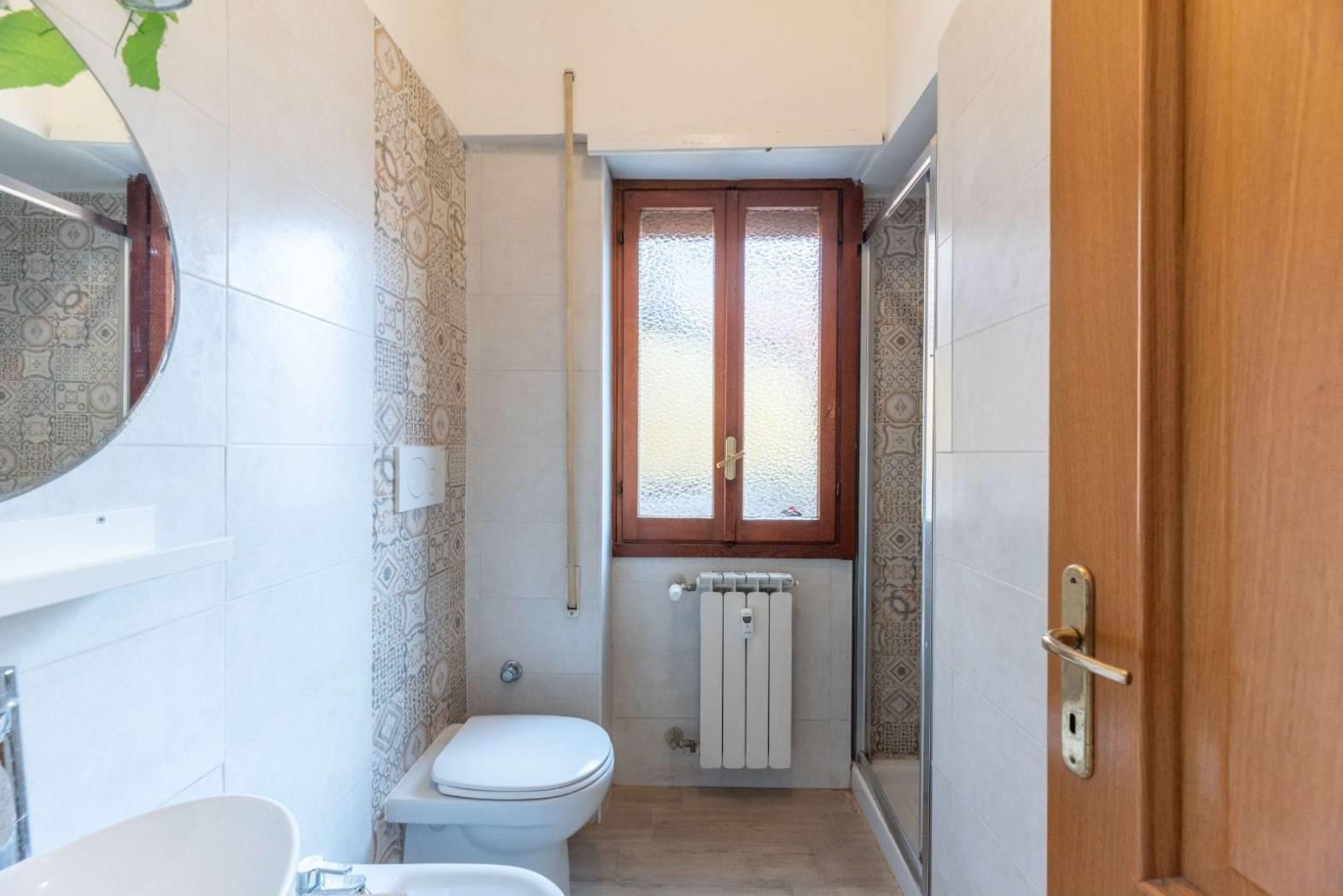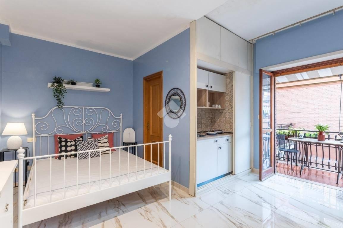 Situato al quarto piano di una palazzina in cortina, con ascensore e servizio di portineria, l'appartamento dispone di una zona giorno con angolo cottura, zona notte, servizio dotato di doccia e finestra e comodo balcone con meraviglioso affaccio diretto sulla Cupola di San Pietro.
