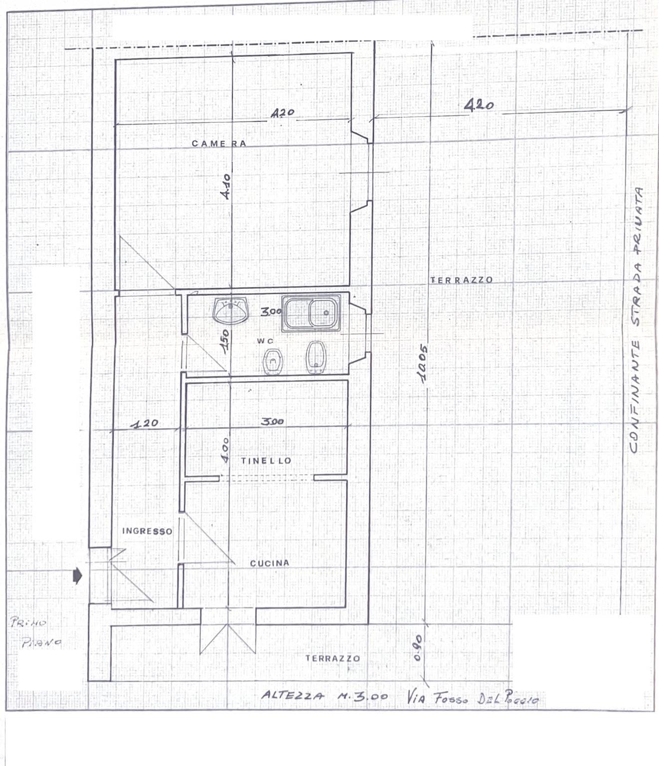 L'immobile è situato in una traversa di via di Grottarossa, all'interno di un piccolo stabile composto da quattro unità abitative. Si tratta di un piano rialzato che comprende un’ampia camera, una cucina abitabile, con tinello un bagno ed un ampio terrazzo di mq 50 circa. Necessita di lavori di ristrutturazione ed attualmente gli infissi sono in alluminio, i pavimenti in marmo ed il riscaldamento è autonomo.