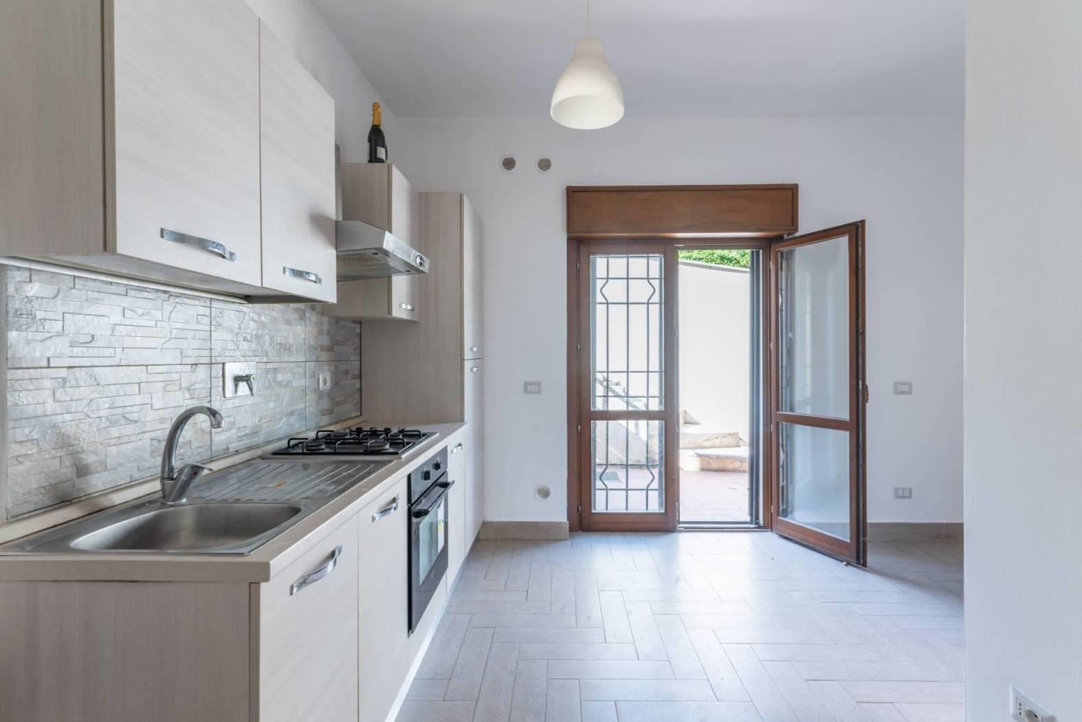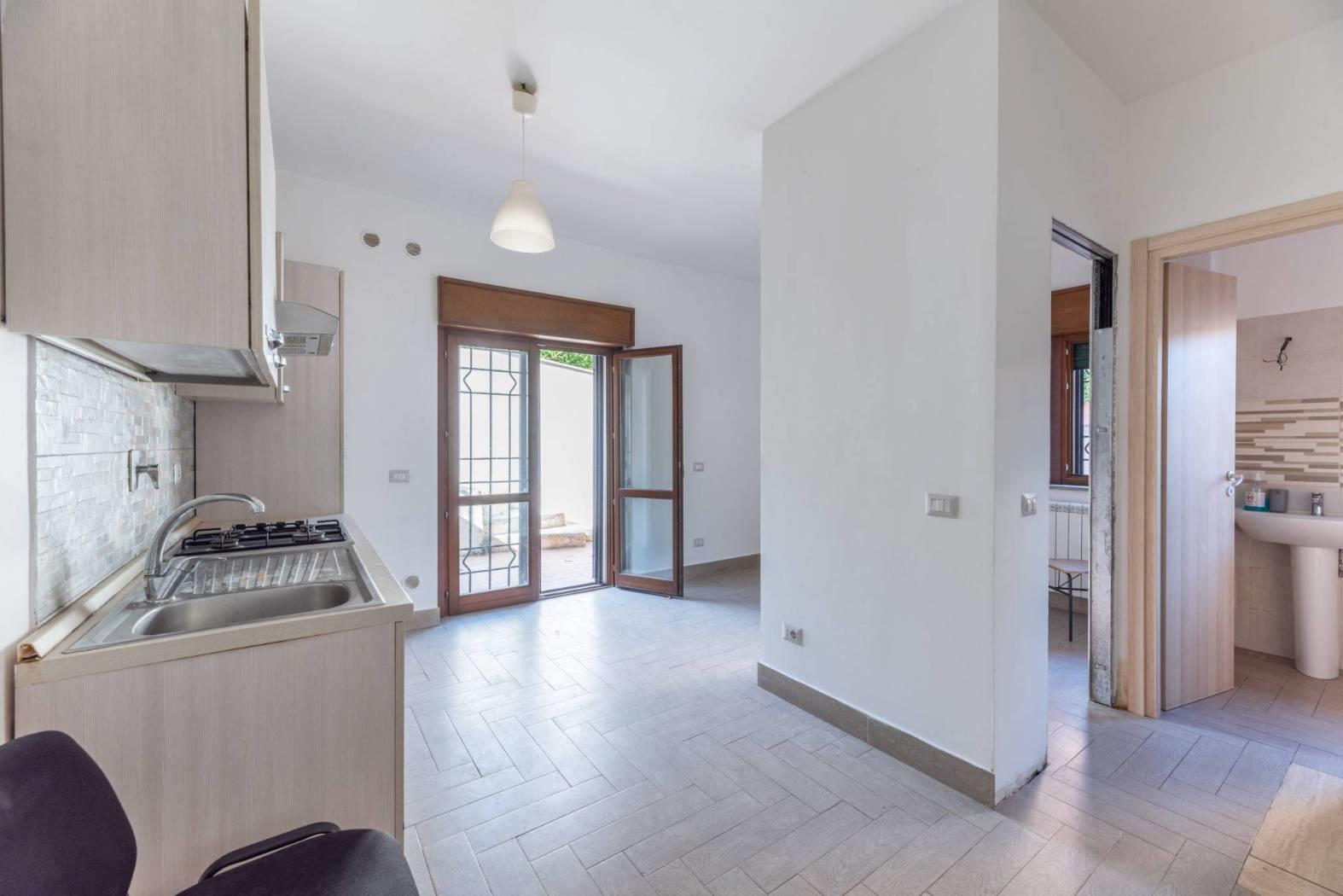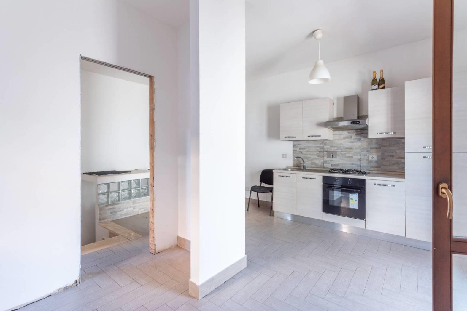 Internamente troviamo ingresso su un open-space con cucina a vista e accesso alla corte esterna di pertinenza oltre ad un servizio con doccia e finestra. Una scala interna conduce al livello sottostante dove è presente un secondo ingresso e altri tre vani con servizio. Piccole opere di rifinitura interna ed esterna, ancora in essere, sono a completa cura e spese della proprietà.