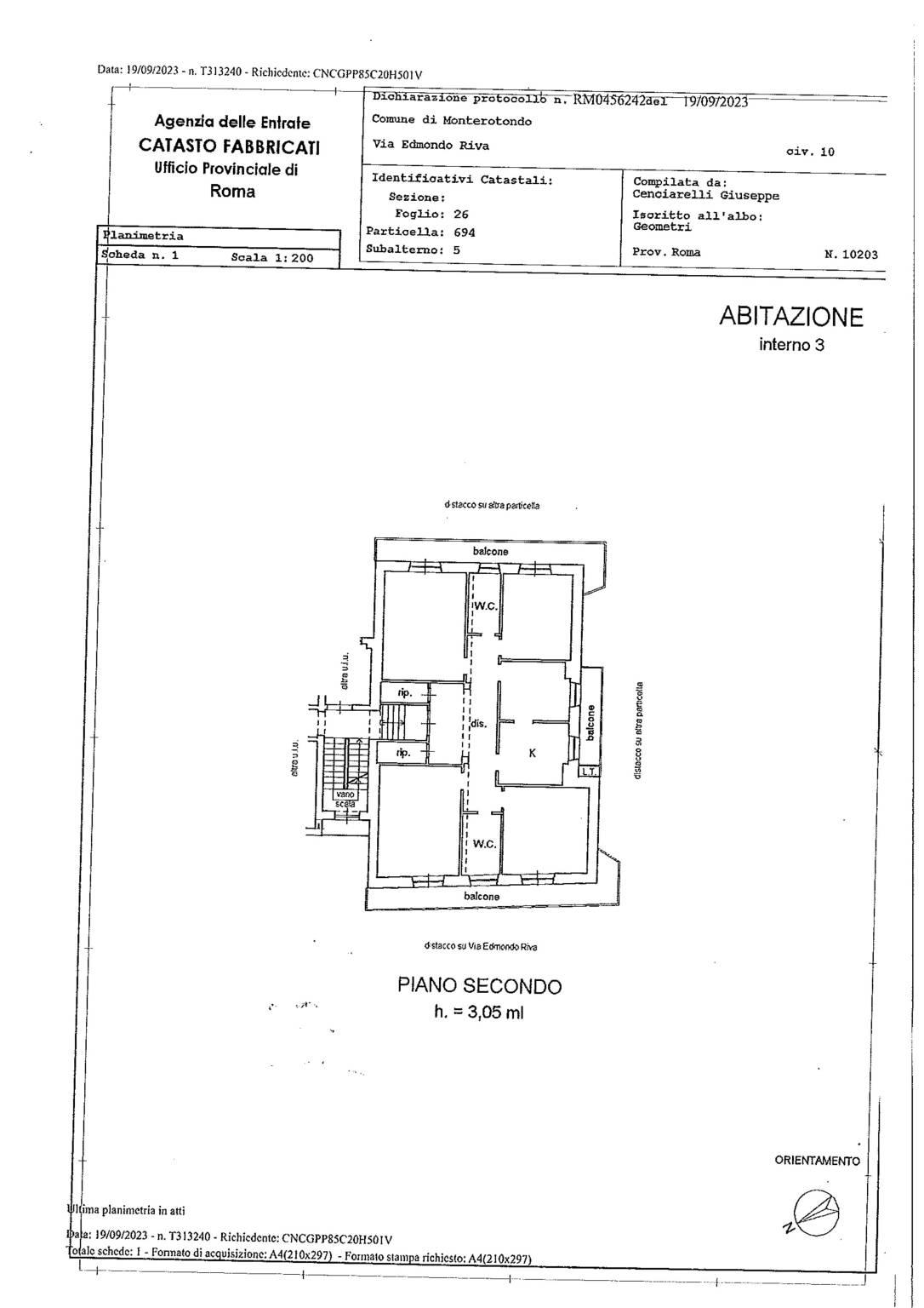 monterotondo via edmondo riva, in piccola palazzina anni '50 disponiamo di un appartamento di ampia metratura sito al piano secondo.l'immobile e' composto da ampio ingresso, due ripostigli, cucina con sala da pranzo, salone, tre camere, doppi servizi, tre balconi. completano la proprieta' un posto auto ed un terrazzo condominiale.