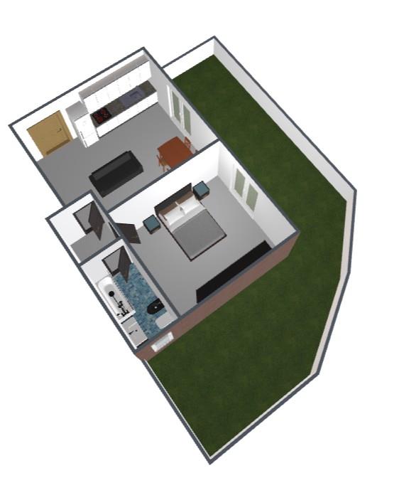 L'immobile è posto all'interno di una costruzione che risale al 2002 ed internamente risulta così composto: salone con angolora cottura a vista, camera matrimoniale, disimpegno, bagno finestrato e giardino angolare.