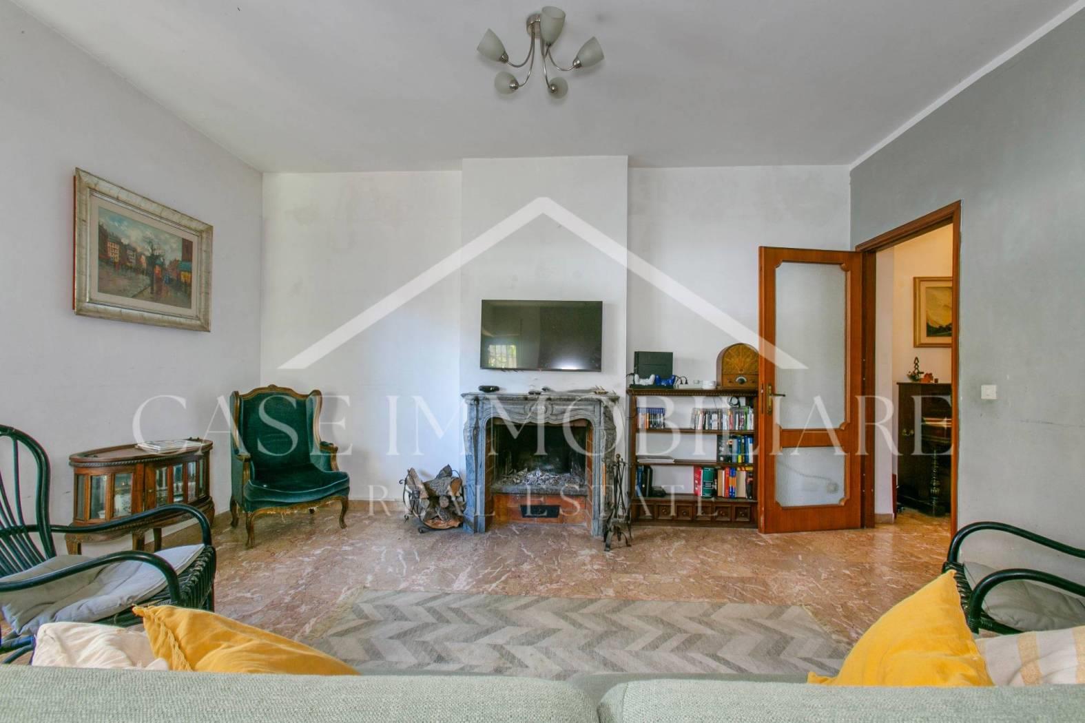 All’ingresso, ci accoglie un ampio disimpegno con cappottiera e armadiature a muro, da qui entrando a destra troviamo la zonagiorno divisa fra zona relax con caminetto funzionante e una zona pranzo, il tutto con accesso diretto al giardino, creando una continuità perfetta tra interno ed esterno.
