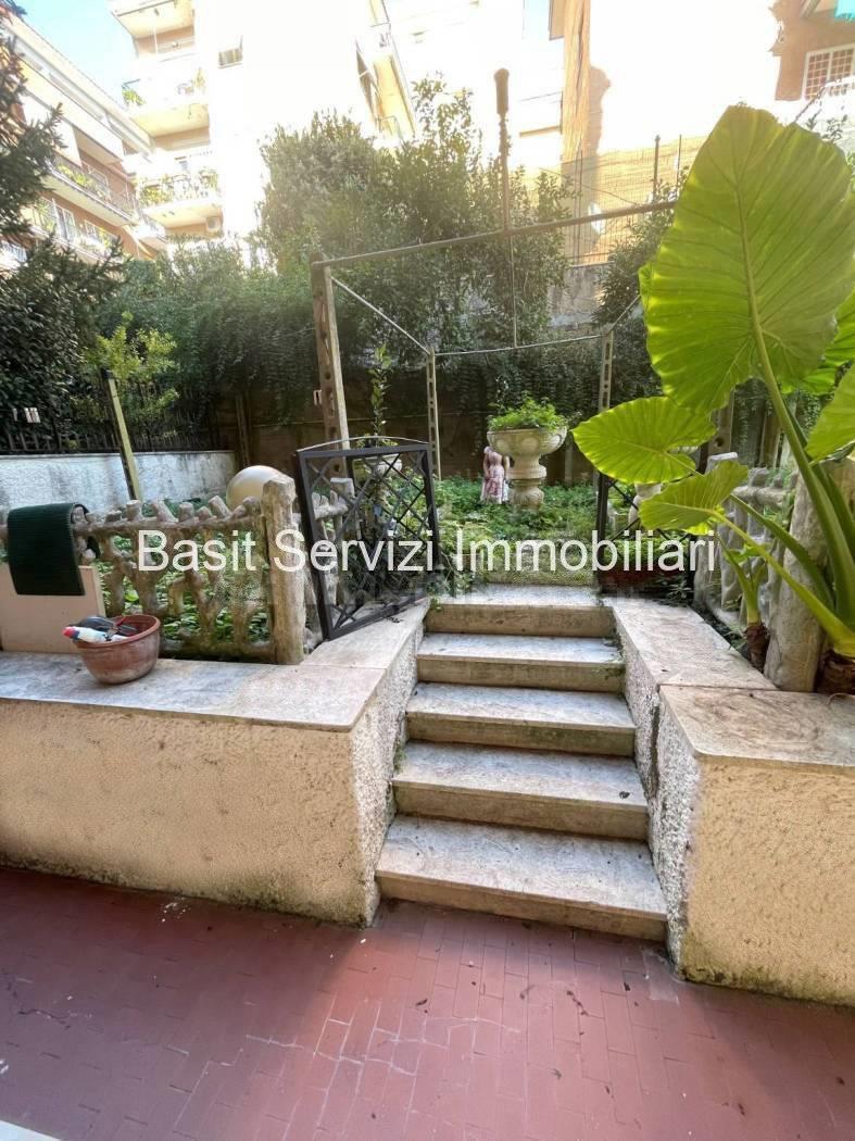 Monteverde, Colli Portuensi, zona collegatissima e servitissima, contesto signorile, palazzina in cortina, proponiamo affascianante appartamento con ampio giardino, tranquillo e luminoso grazie all'esposizione a Sud/Ovest , composto da: ampio ingresso, salone doppio con camino, cucina abitabile, due camere matrimoniali, due bagni, ripostiglio. Possibilità terza camera. Il giardino in parte pavimentato (70 mq) ed in parte in erba (130 mq) accoglie meravigliosi alberi da frutto. L'assenza di vincoli strutturali rende l'immobile potenzialmente trasformabile in varie soluzioni di distribuzione degli spazi interni. Un'oasi di pace nel cuore della città.