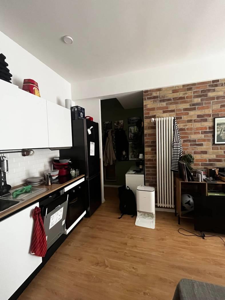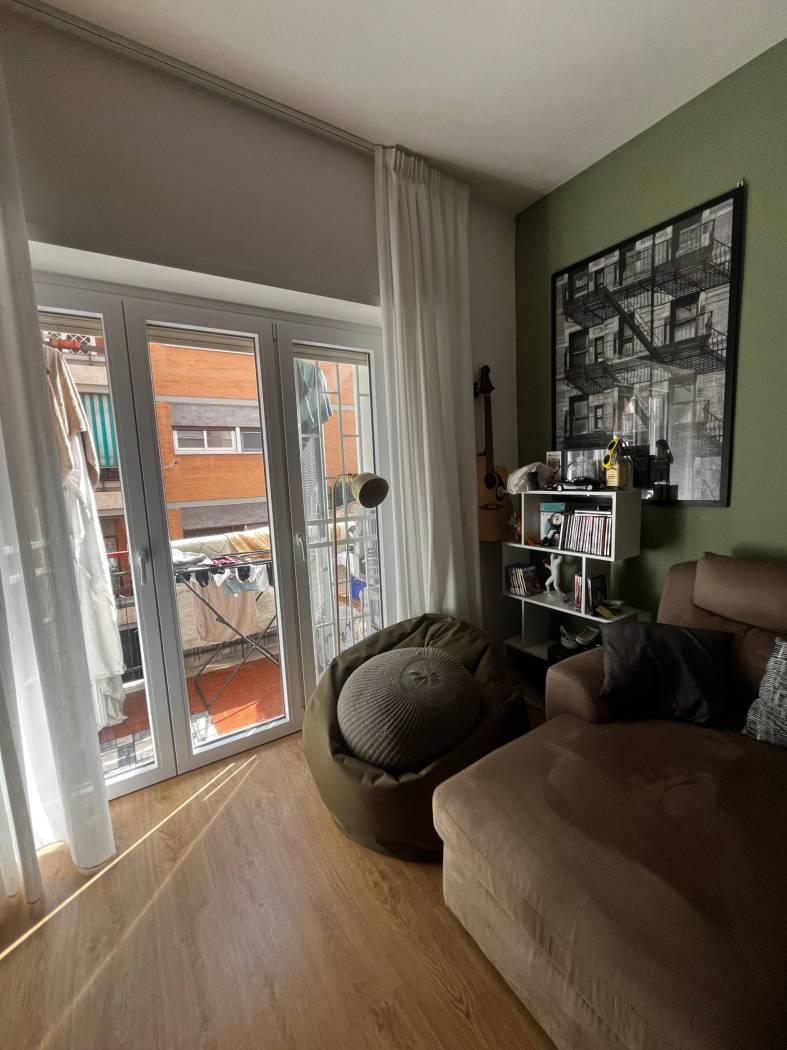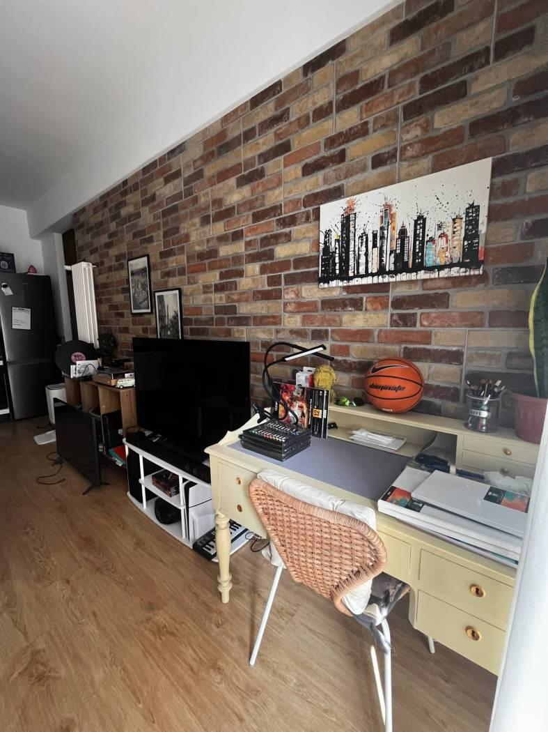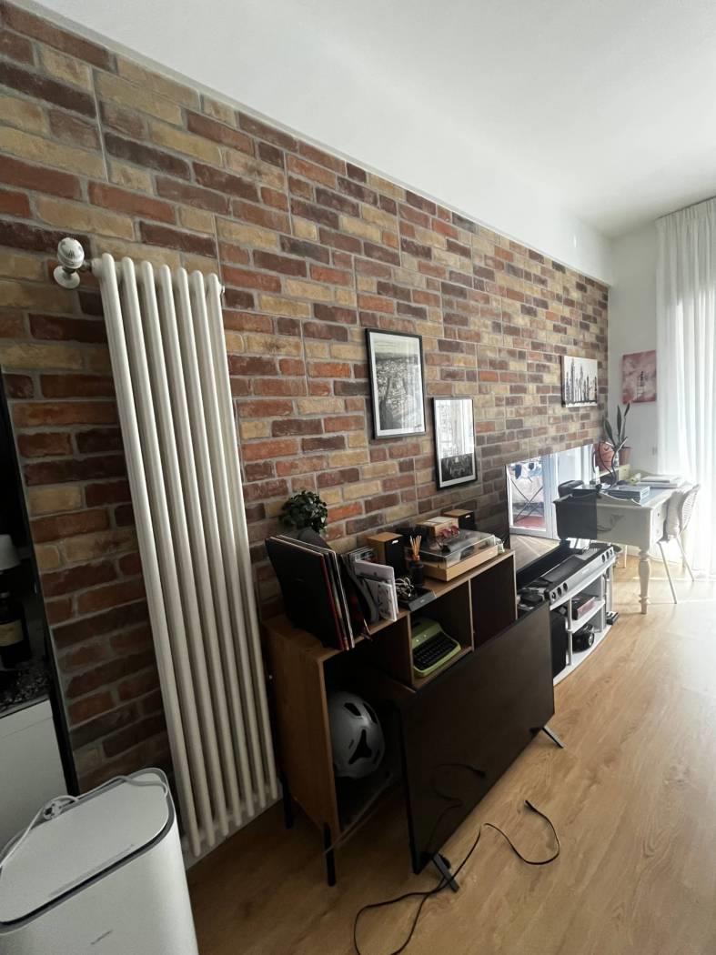 L’immobile si compone d’ingresso, soggiorno con cucina a vista e balcone, camera da letto, bagno e locale cantina di pertinenza dell’immobile da cui si può direttamente accedere dall’appartamento adibito adesso a cabina armadio.