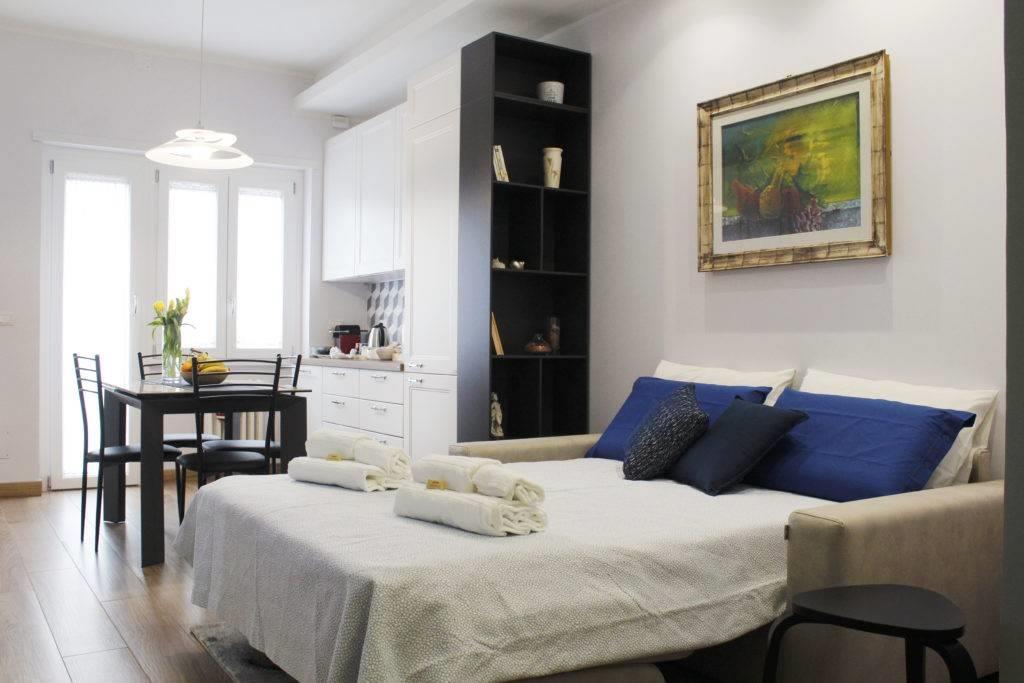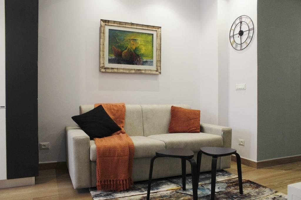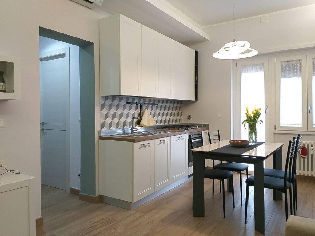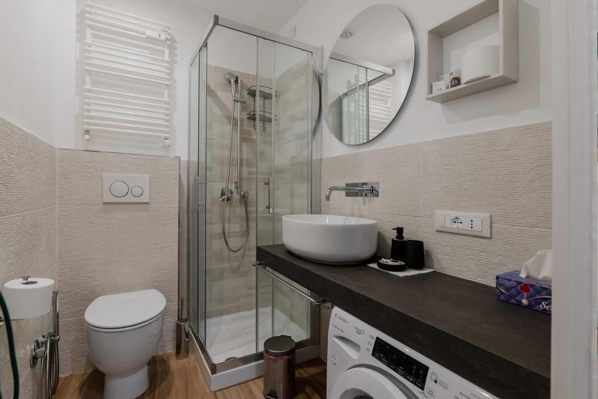 L'appartamento risulta finemente ristrutturato ed arredato. La cucina Scavolini su misura presenta tutti gli elettrodomestici, così come i servizi dispongono di arredi e box doccia in muratura; le camere inoltre sono dotate di armadiature e pareti attrezzate, il tutto per fornire il massimo del comfort e della praticità.