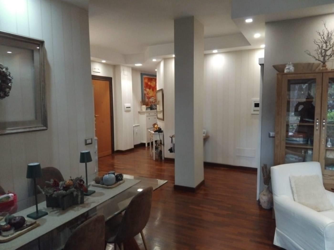 Via Padre Angelo Paoli In contesto residenziale proponiamo in vendita appartamento di mq. 160 commerciali e 130 mq. calpestabili. La proprietà situata al 1° piano di un elegante condominio, con aree verdi e giardini molto curati (su un lato affaccio come 2°/sull’altro piano terra), gode di una doppia esposizione ed è composta da ampio ingresso, salone, cucina abitabile in muratura, 3 camere, 2 bagni finestrati, zona lavanderia e due terrazze di cui una coperta dalla quale si accede comodamente sia dal salone che dalla cucina e l'altra con giardino pavimentato. L'immobile si presenta in ottime condizioni interne, essendo stato oggetto di recente ristrutturazione con materiali di pregio (parquet, porte "garofoli", serrande elettriche, grate di sicurezza, zanzariere), pressoché totale e l'ampia metratura e i grandi spazi esterni rendono questo appartamento molto versatile, adatto a nuclei familiari con bambini e animali domestici. Possibilità di acquisto box auto di 20 mq. c.ca. finestrato al piano terra (35.000,00 euro). Una delle rampe carrabili conduce direttamente davanti l'ingresso condominiale per consentire facilmente di eseguire tutte le operazioni di carico e scarico, o anche semplicemente per rendere più agevole l'accesso alle persone. Pur avendo i servizi nelle immediate vicinanze, l'abitazione gode di affacci riservati e silenziosi.
