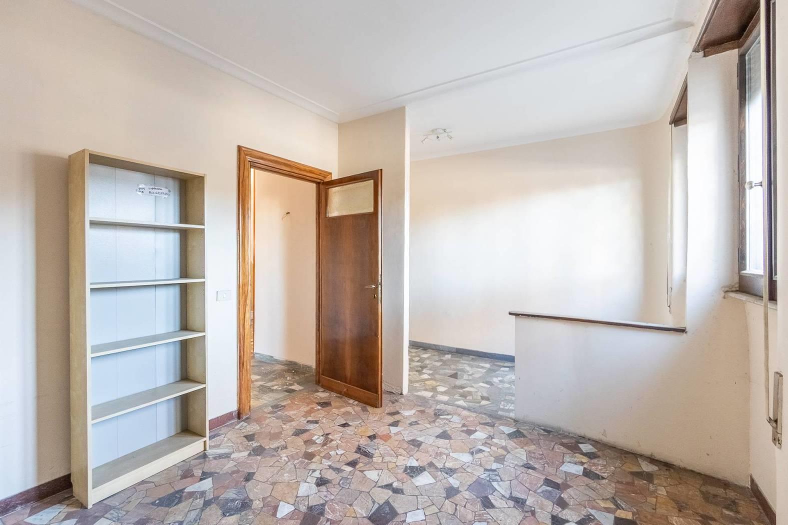 Una scala interna si collega al piano inferiore che si articola in tre stanze e un ampio servizio.