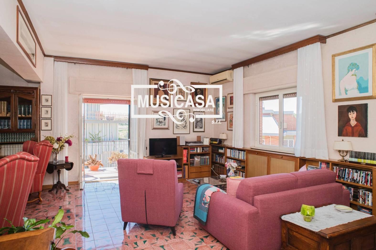 Composto da: ingresso, salone triplo con accesso sul balcone/terrazzo, tinello, cucina completamente arredata con mobilio ed elettrodomestici, con accesso sul balcone.